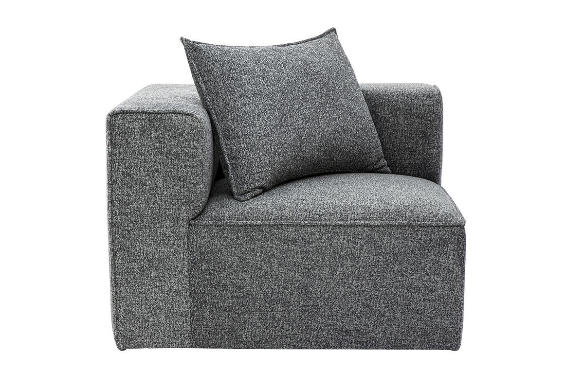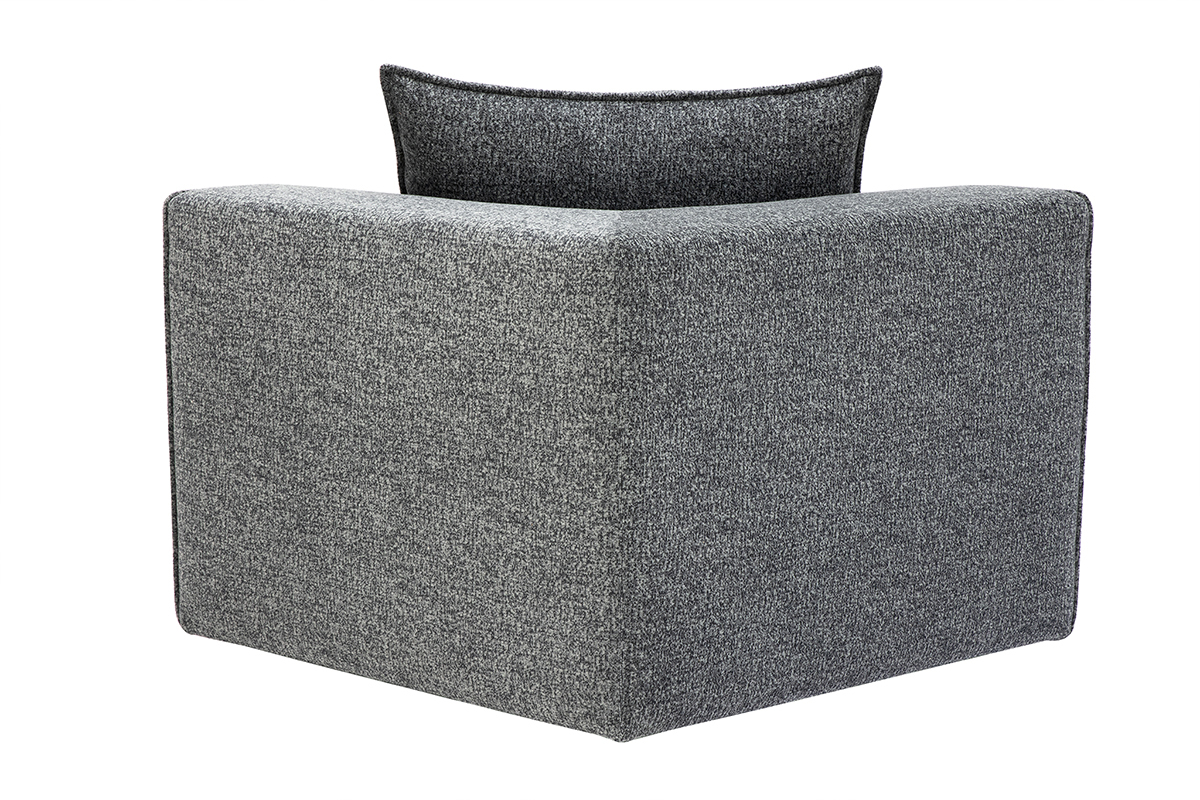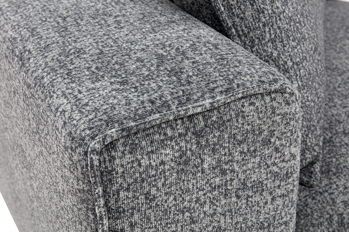 Le tissu chiné gris foncé qui habille le module d’angle design KERRY lui confère une allure à la fois sobre et sophistiquée. Ce revêtement texturé, à la fois résistant, épais et doux au toucher, s’intègre harmonieusement dans une décoration moderne, industrielle ou scandinave. Les nuances subtiles du chiné ajoutent du relief au visuel tout en facilitant l’entretien quotidien.