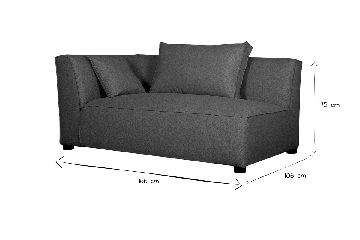 Avec ses dimensions L166 x P106 x H75 cm ce module d'angle gauche design permet d'aménager un espace détente confortable dans le salon ou dans un autre espace dédié à la détente de la maison, comme une bibliothèque.