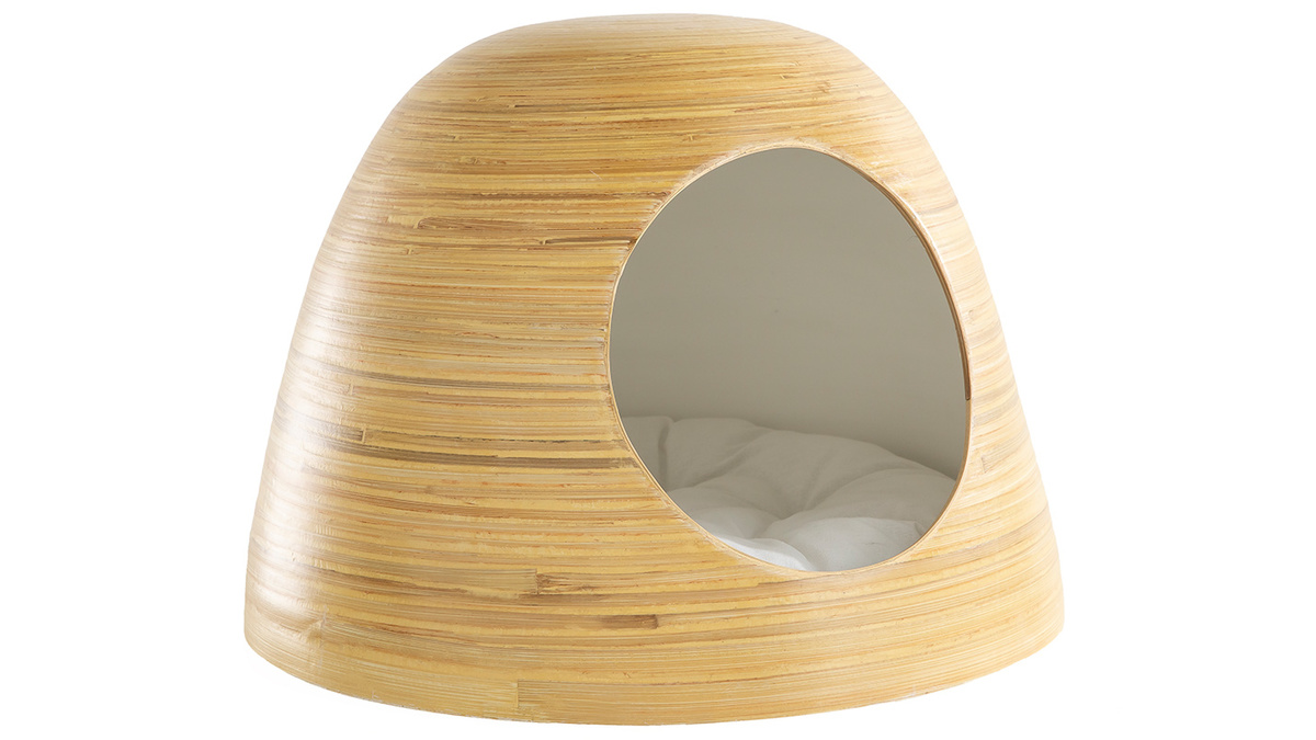 Offrez à votre compagnon à quatre pattes la cabane de ses rêves ! Avec sa forme de dôme et son coussin moelleux, la niche YODO est un véritable cocon plein de douceur. Votre animal s'y sentira en sécurité et pourra profiter de repos en toute tranquillité. Conçue en bambou, cette petite maison pour chat et petit chien est un accessoire authentique au charme naturel. Le joli constrate entre un extérieur en bambou naturel et un intérieur laqué blanc fait de l'ensemble un bel objet déco.