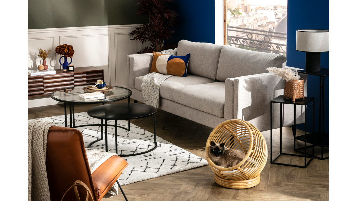 Avec son look unique, le panier pour chat et petit chien HADLEY est un espace douillet et protecteur pour votre animal de compagnie. Sa forme ronde, façon cocon, est idéale pour apporter un sentiment de sécurité tout en offrant un rendu ultra déco. On aime la douceur de ses courbes et cette structure en rotin réalisée à la main. Ce panier design pour chat et petit chien est le fruit d'un savoir-faire artisanal ce qui en fait une pièce unique. Il est authentique et plein de caractère... comme votre compagnon à quatre pattes !