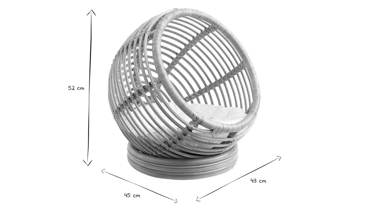 Ce panier design en rotin pour petit animal de compagnie convient aux chats et aux petits chiens. Avec ses mini dimensions L43 x P45 x H52 cm il se glissera facilement dans un salon bohème ou une chambre exotique. Il est accompagné d'un petit coussin moelleux pour que votre animal profite de ses siestes confortablement installé !