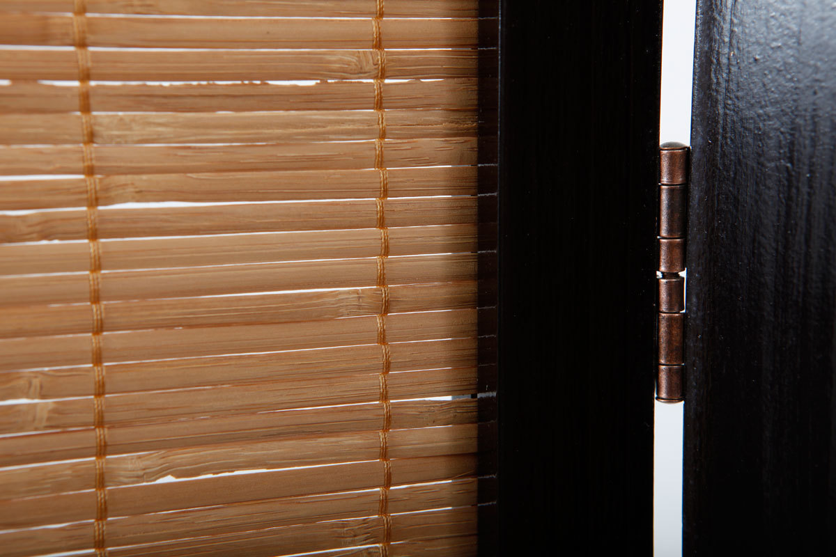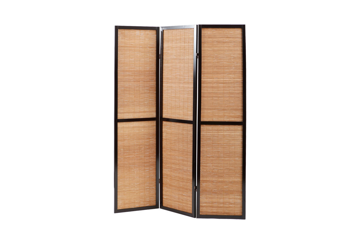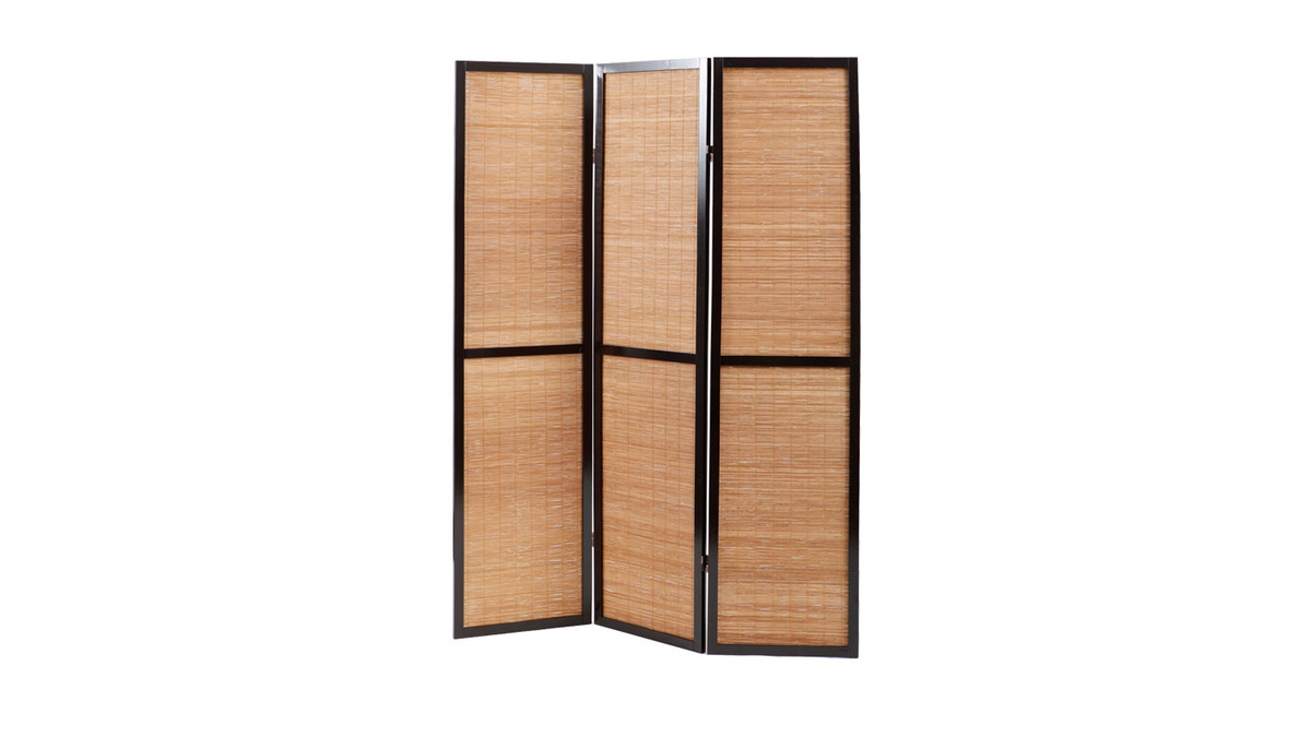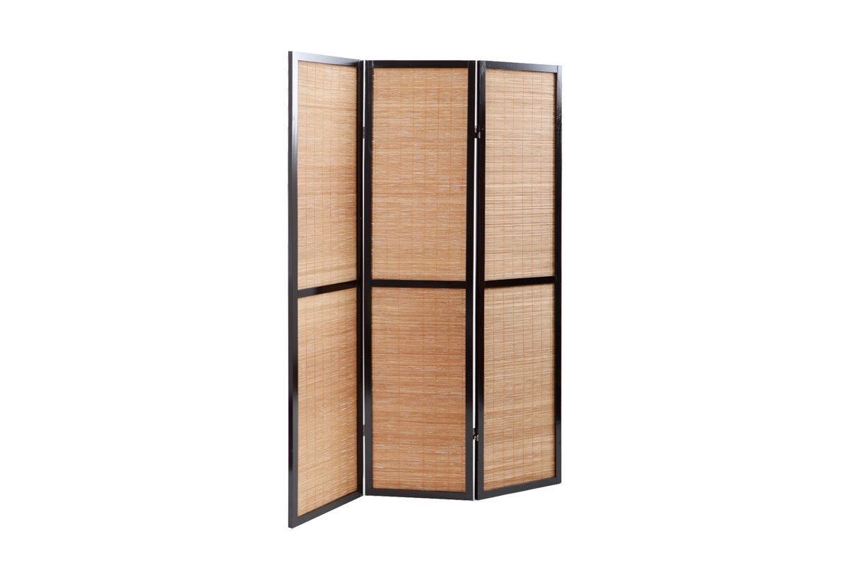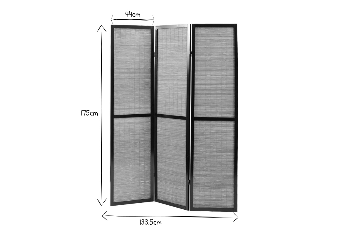 Cadrées par une structure en bois teinté noir, les lattes de bambou laissent filtrer la lumière avec délicatesse et forment un motif ornemental parfait pour habiller un mur ou former une tête de lit original ! Cloison mobile et modulable, ce paravent d'intérieur 3 vantaux noir et bambou signera avec élégance la jonction entre deux espaces de vie dans une même pièce - en complément d'un tapis, il délimitera des zones plus intimistes et chaleureuses.