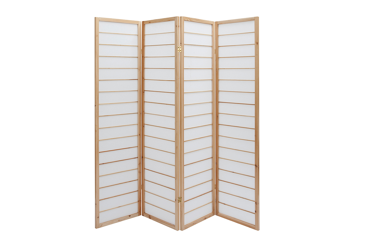 Cet élégant paravent blanc et bois se compose d'une structure en sapin massif, robuste et légère à la fois. L'intérieur des vantaux est réalisé à partir de papier de riz renforcé, un matériau souple et résistant qui filtre la lumière.