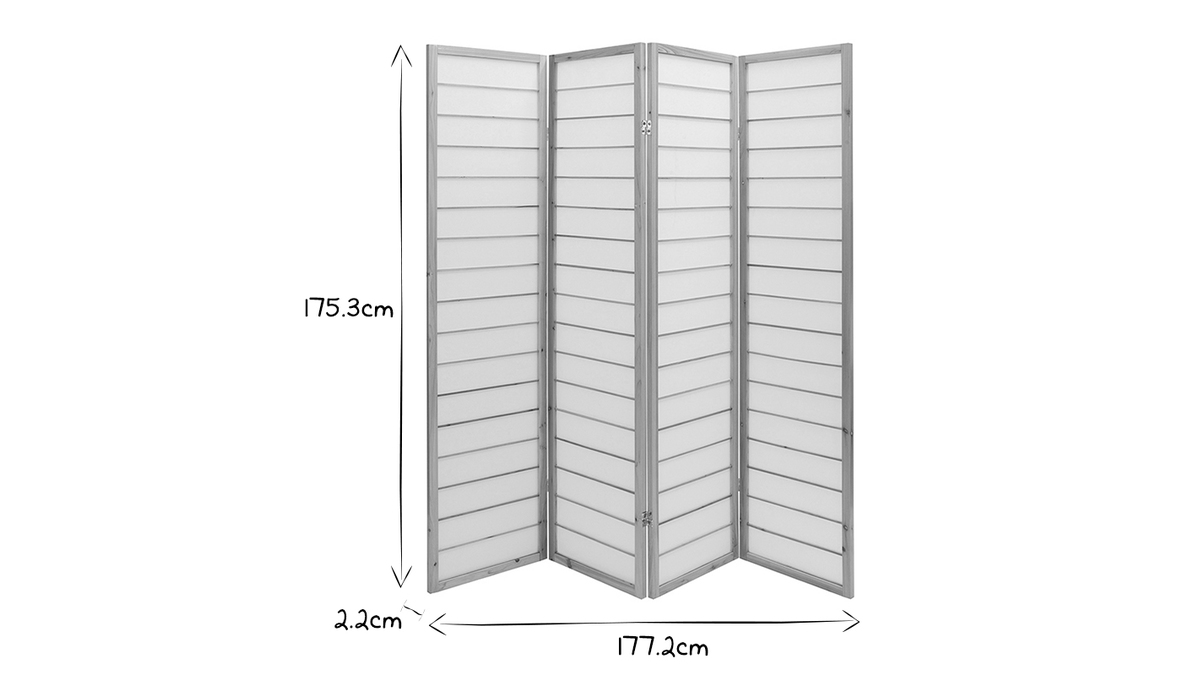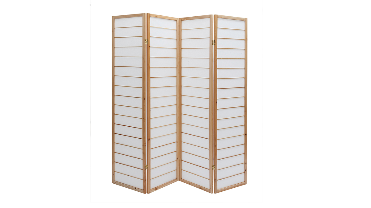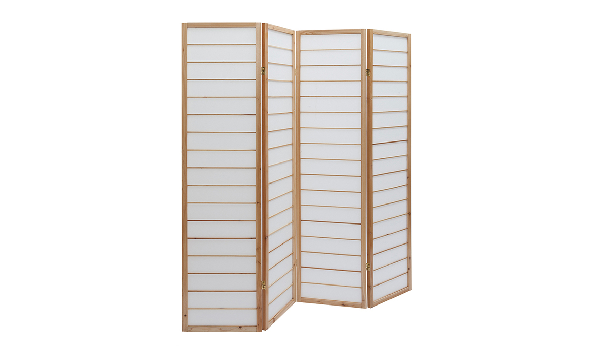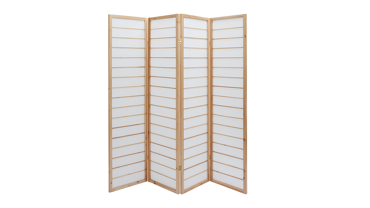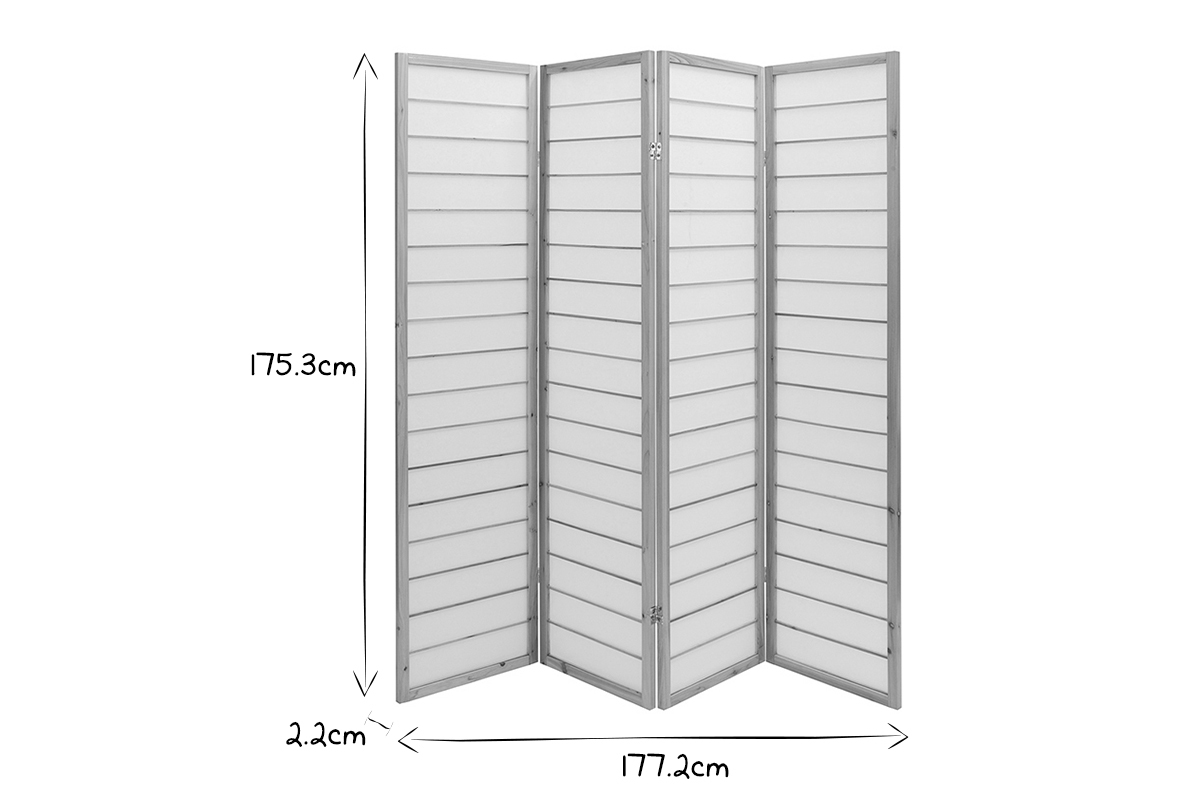 Ce grand paravent déco est muni de 4 vantaux qui se déploient selon vos envies. Totalement ouvert, il se transforme en cloison mobile d'une longueur totale de 177 cm. Une fois replié, il sait se faire tout petit (dimensions paravent fermé : L43.6 x H175 cm).