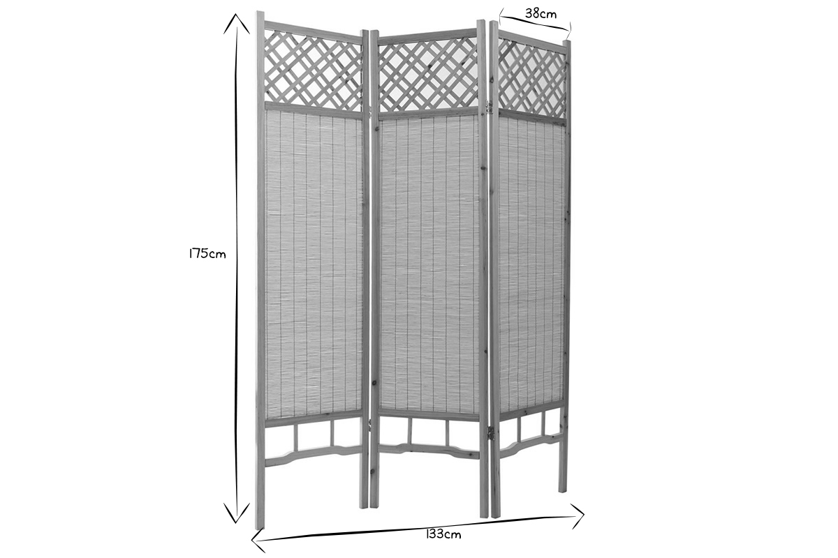 Paravent japonais en pin et bambou 3 vantaux L133 cm NEW NIHA