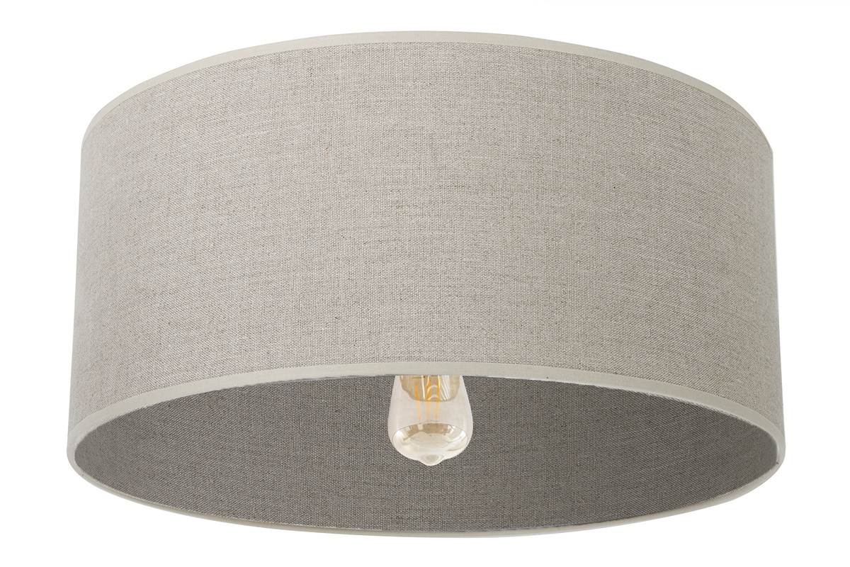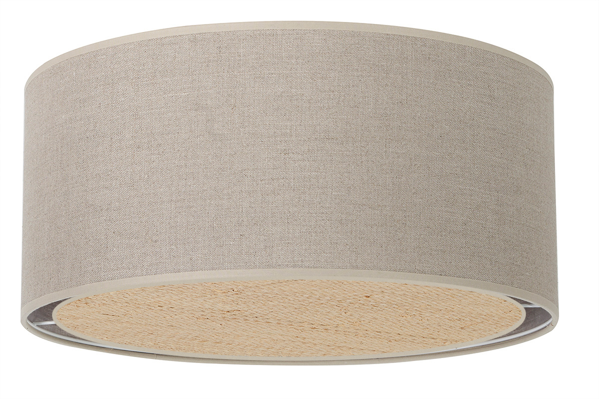 La lumière filtrant à travers le lin, ce plafonnier rond offre un éclairage d'ambiance chaleureux. Il est complété par un disque diffuseur amovible en rabane naturel. Vous pouvez ainsi choisir l'intensité lumineuse de votre luminaire. Sans le disque diffuseur, la lumière sera projetée directement vers le bas et donc relativement puissante. Avec le disque, la lumière sera plus diffuse car indirecte.