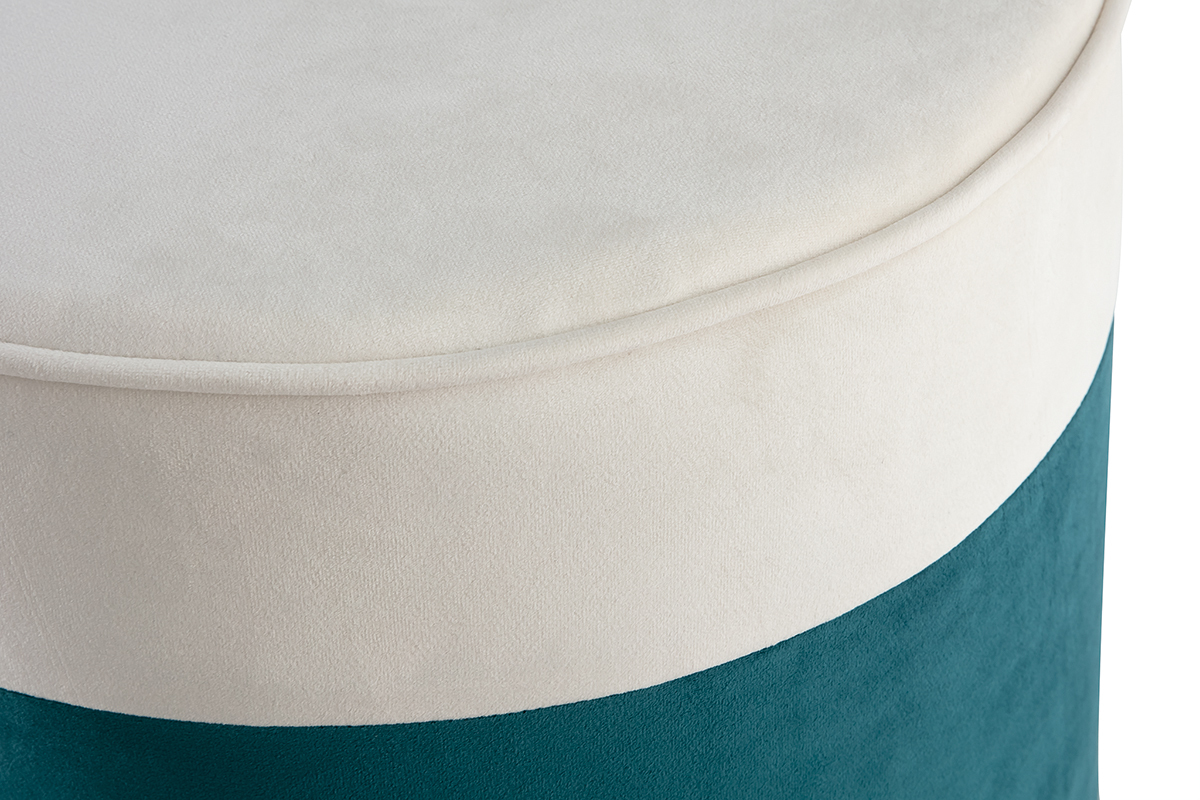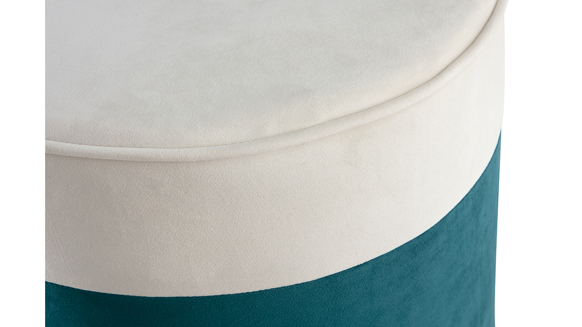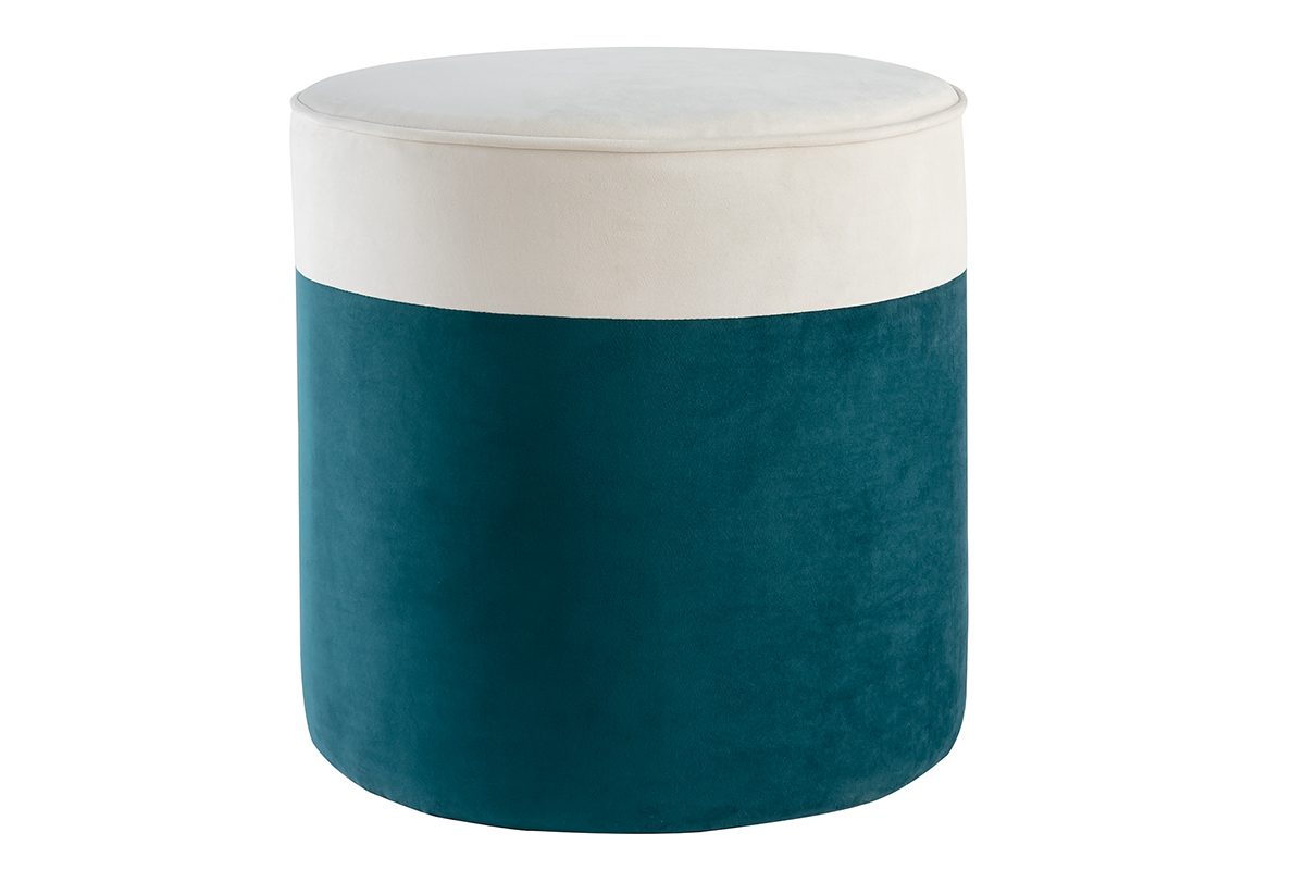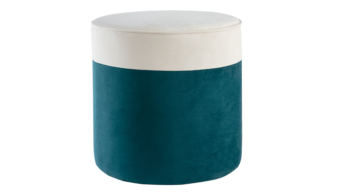 Pouf design bicolore en tissu velours blanc crème et bleu paon D40 cm DAISY