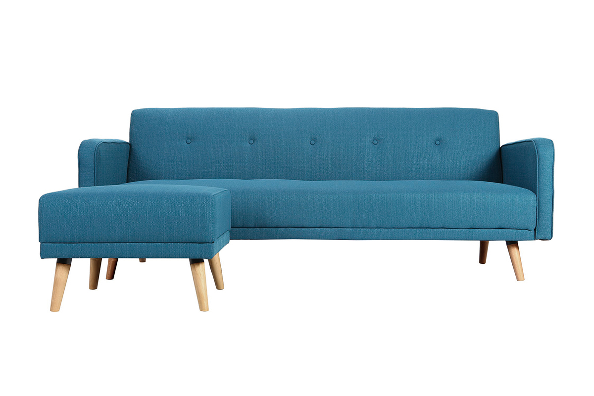 Ses pieds inclinés en bois offrent un look totalement scandinave à ce repose pieds.