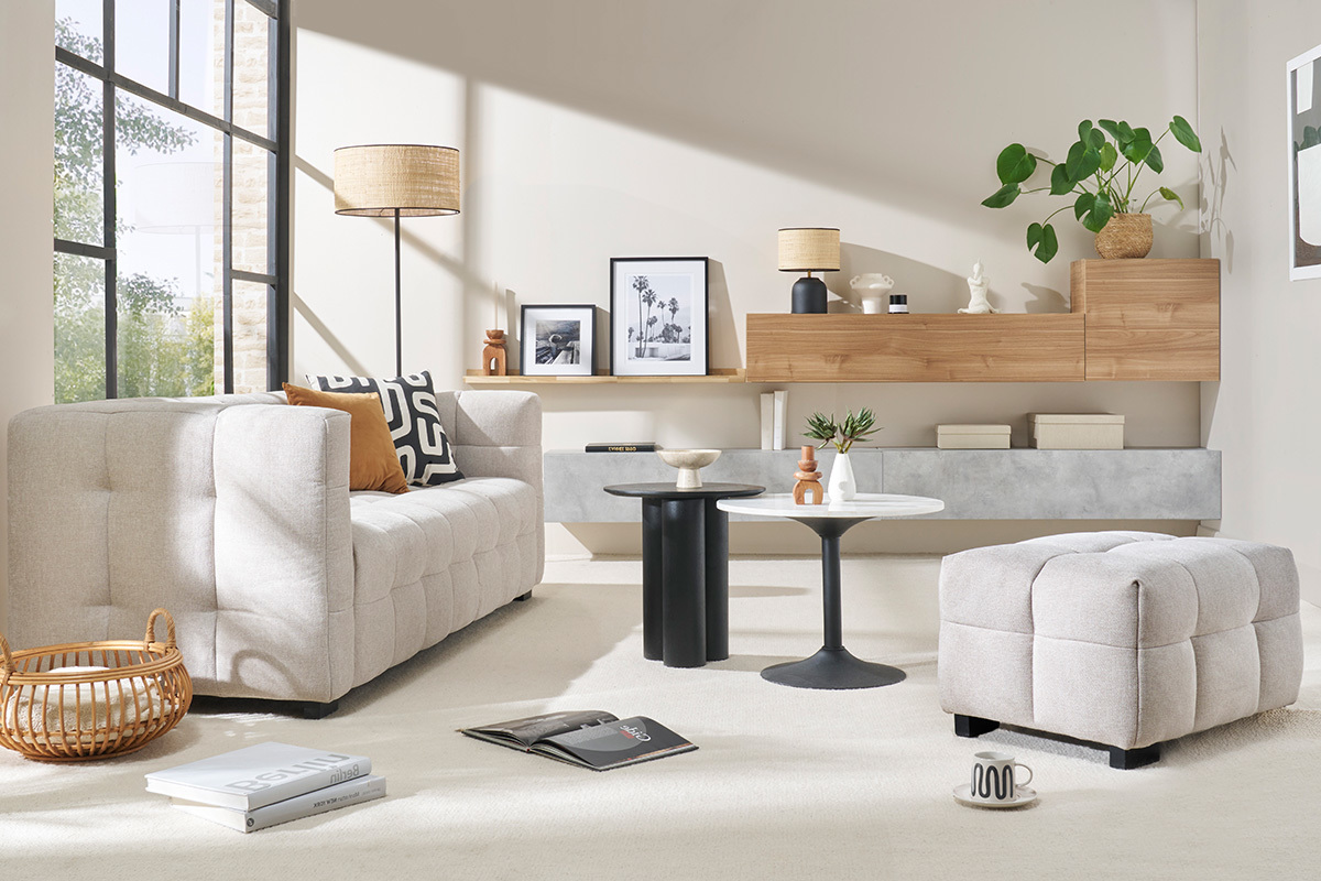Autrefois cantonnées aux intérieurs rétros, les courbes s'associent avec brio à la modernité des nouvelles tendances en décoration d'intérieur. Pile dans l'esprit du « soft living » avec ses formes nébuleuses et sa couleur douce, ce pouf repose-pieds beige aura toute sa place dans un intérieur moderne à l'ambiance apaisante et cosy. Un graphisme qui va rompre instantanément avec l'image trop brute et statique d'une déco rectiligne.