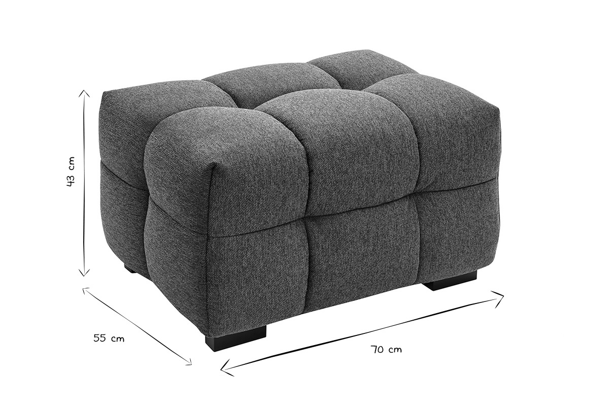 Grâce à ses dimensions L70 x P55 x H43 cm, CORTO est un petit pouf repose-pieds rectangulaire facile à déplacer d'une pièce à l'autre qui trouvera sa place autant dans un salon, qu'une entrée ou encore une chambre à coucher.