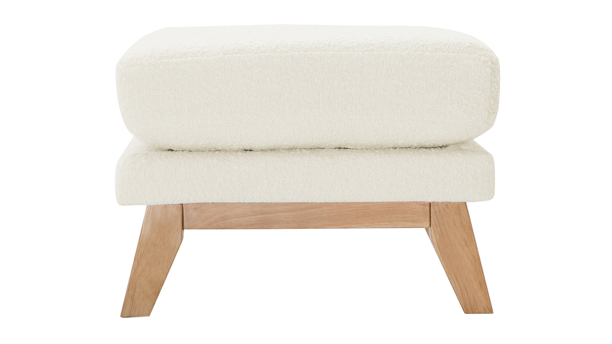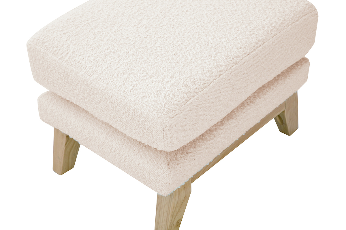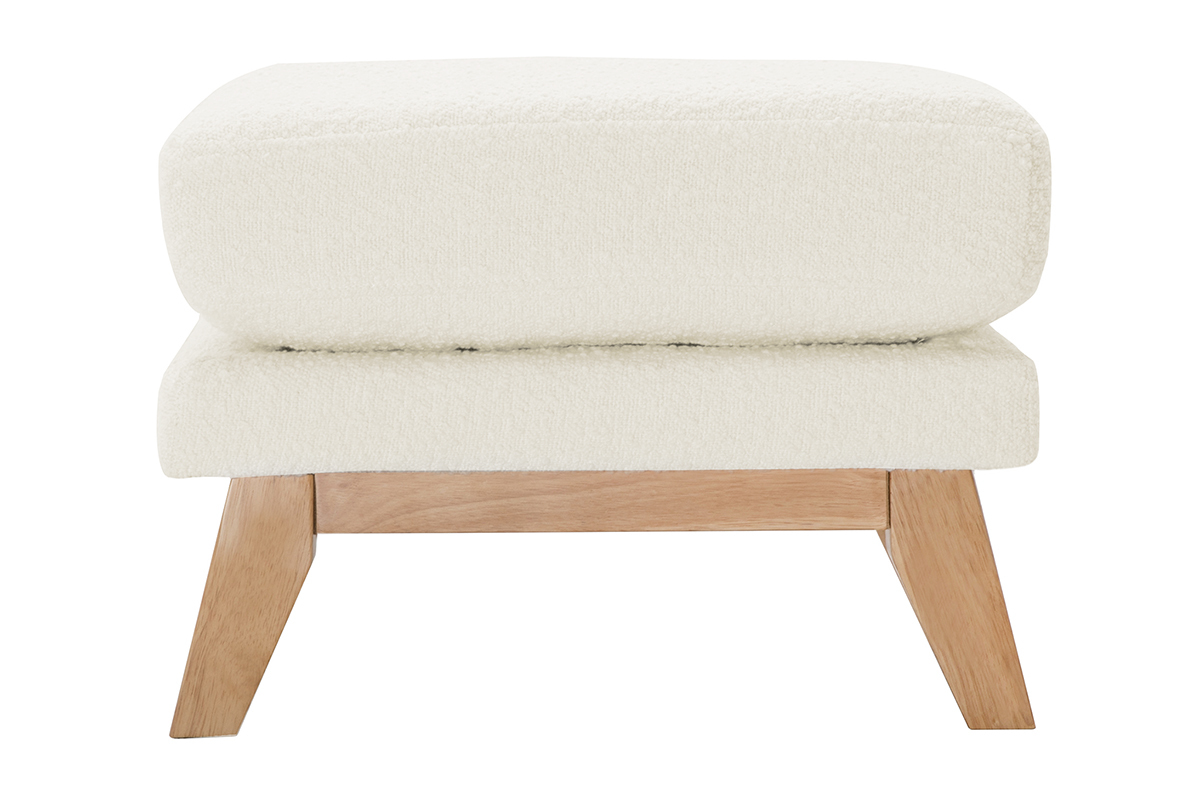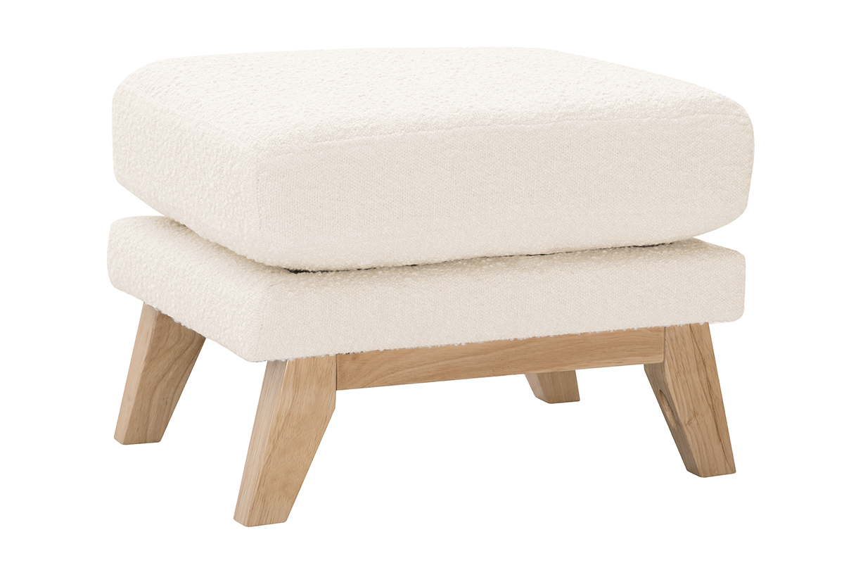 Pouf repose-pieds déhoussable scandinave en tissu effet laine bouclée blanc cassé et bois clair OSLO livré à assembler. Montage simple, seuls les pieds sont à fixer.