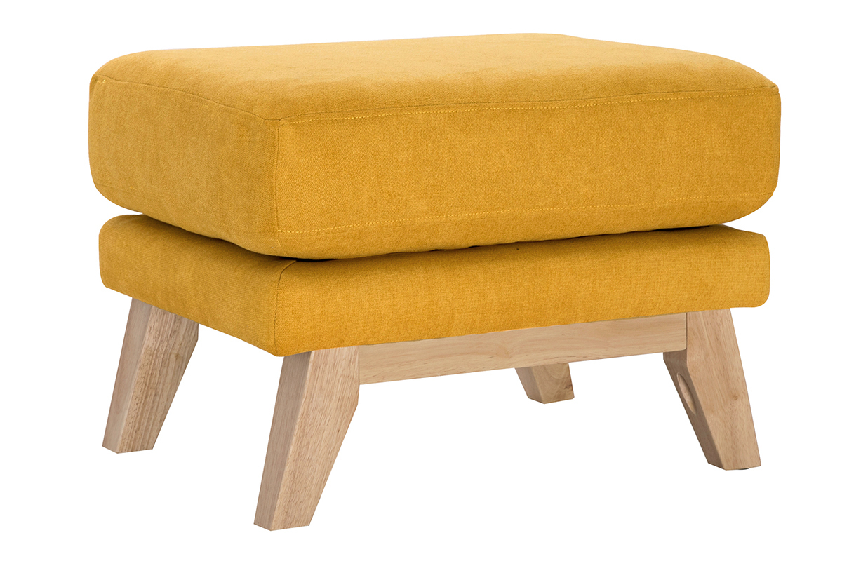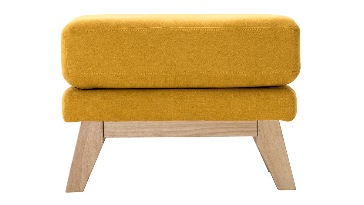 Pouf repose-pieds déhoussable scandinave en tissu effet velours jaune moutarde et bois clair OSLO livré à assembler. Montage simple, seuls les pieds sont à fixer.