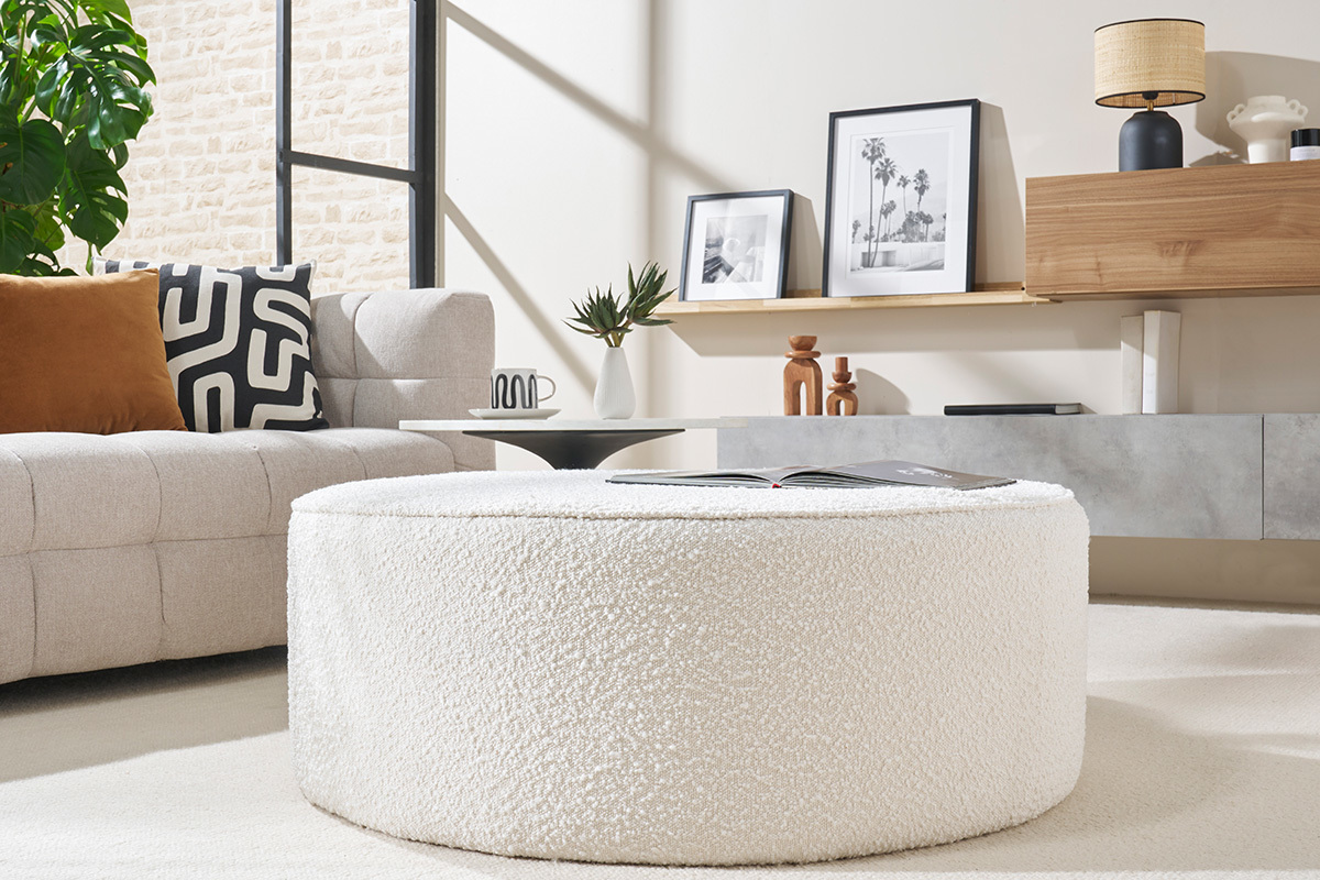 Avec ce grand pouf rond en tissu effet laine bouclée blanc, l'esprit cocooning n'aura jamais été aussi présent dans votre intérieur.