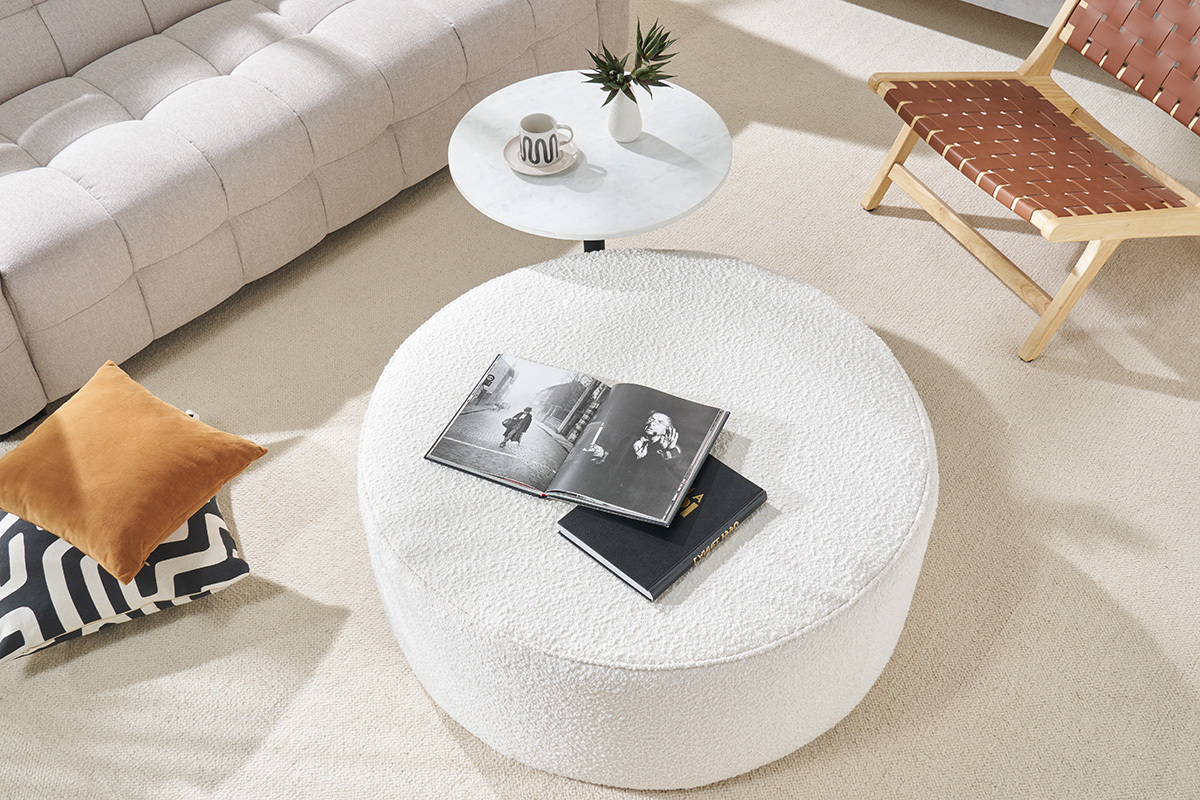 Tout en rondeur, SIMON et ses dimensions généreuses (D100 x H40 cm) mettent en valeur ce tissu duveteux qui nous séduit toujours autant saisons après saisons. Indispensable des intérieurs chaleureux, l'effet laine bouclée charme par sa douceur innée. On adore la manière par laquelle cette belle matière se voit sublimée par un design arrondi, tout en élégance et en simplicité.
