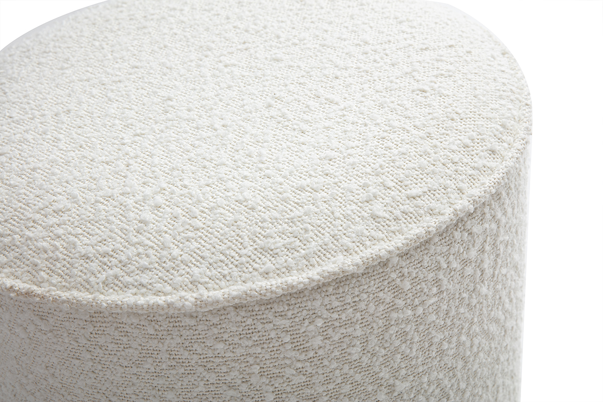 Le coloris blanc du pouf PAUL séduit par sa subtilité. Ni trop vif ni trop neutre, il s’inscrit dans une palette naturelle et délicate qui s’accorde aisément avec une grande variété de teintes. Cette teinte douce saura créer une ambiance sereine et raffinée. Le tissu effet laine bouclée accentue cette sensation de confort visuel en ajoutant une profondeur de matière qui capte la lumière avec délicatesse.