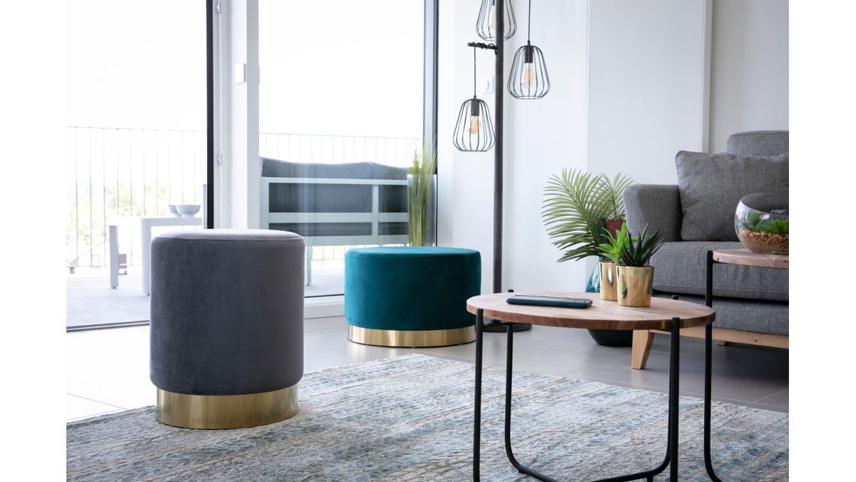Avec son revêtement en velours et son piètement en métal doré, ce petit pouf rond est un objet déco à part entière. Velours et métaux couleur or, symboles du luxe et du raffinement, sont idéaux pour faire de son intérieur un petit bijou précieux. Le modèle AMAYA associe ces deux matériaux pour un rendu unique, élégant et plein de charme.