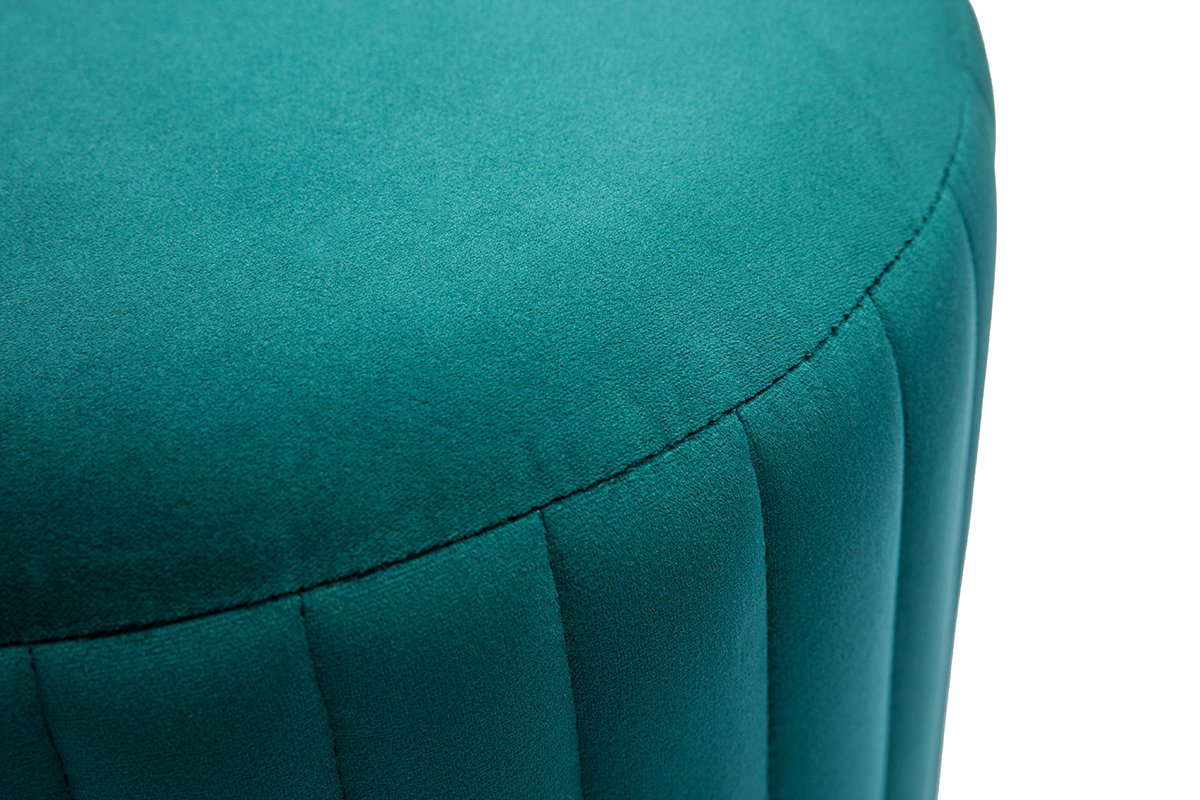 Ce petit pouf en velours bleu pétrole sera parfait pour passer un moment de détente. Il apporte confort et douceur grâce à son velours côtelé élégant et son assise ferme (densité de 25 kg/m3). L'association avec son pied métal offre un visuel riche empli de contraste et de raffinement.