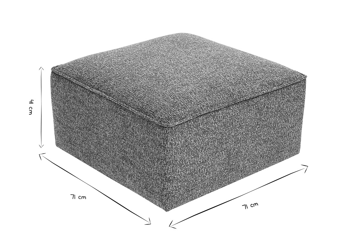 Avec ses dimensions de L71 x P71 x H41 cm, il s'intègre parfaitement dans tous types d'agencements : placé à l’extrémité d’un canapé, au centre comme repose-pieds, ou même utilisé seul en assise d’appoint, il répond à tous vos besoins avec élégance et praticité.