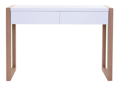 Bureau avec rangements 3 tiroirs scandinave blanc mat et bois clair frêne massif L130 cm ARMEL
