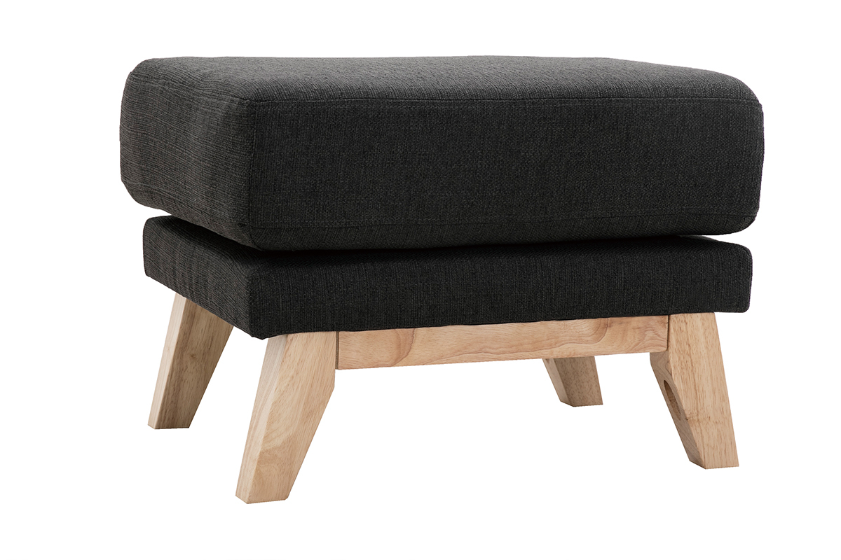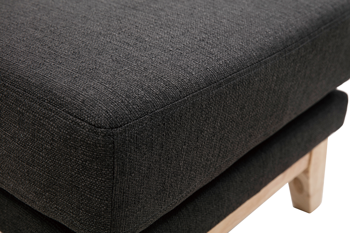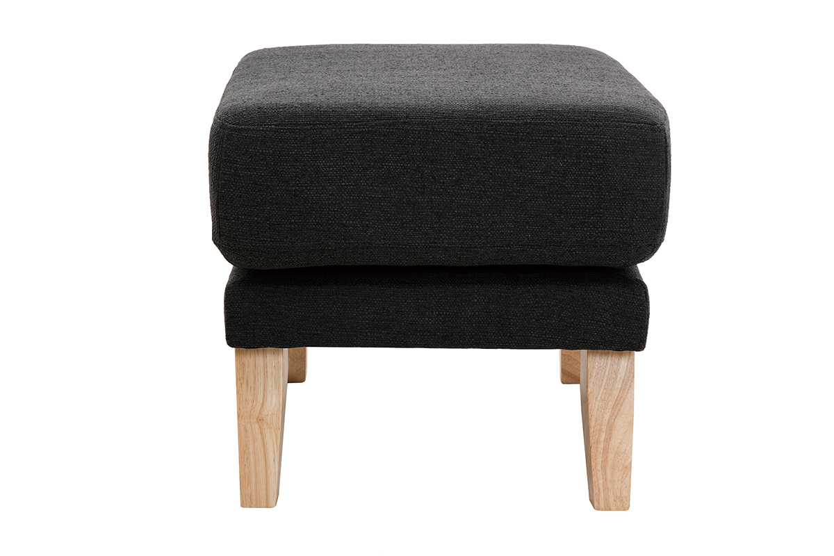 Pouf repose-pieds déhoussable scandinave en tissu gris foncé et bois clair OSLO livré à assembler. Montage simple, seuls les pieds sont à fixer.