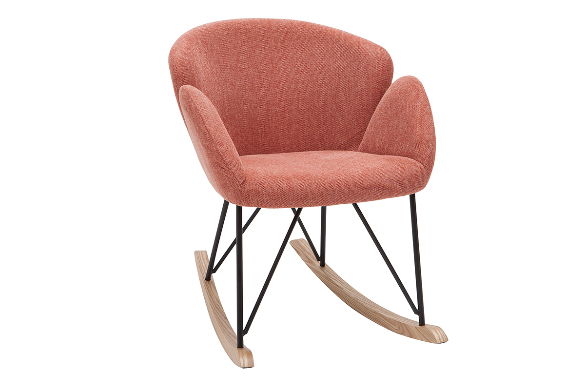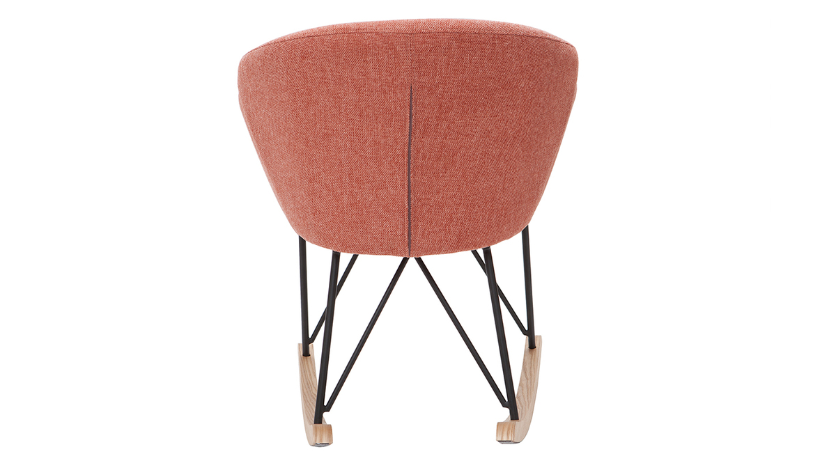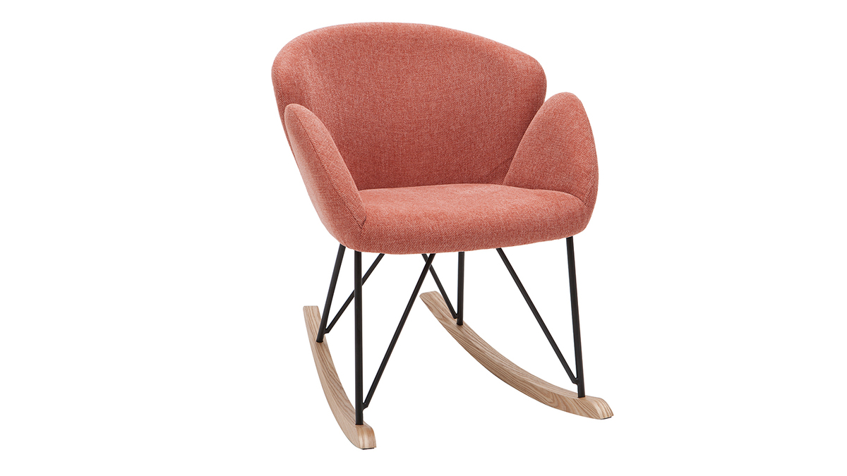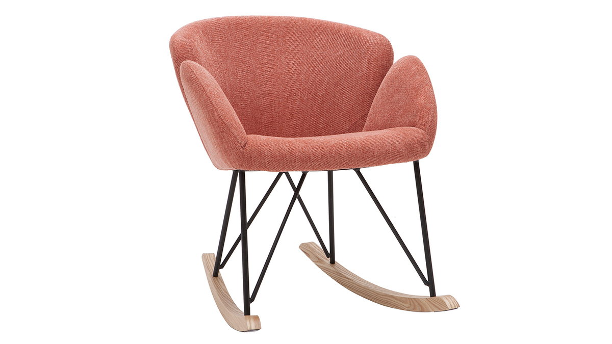 Son revêtement en polyester texturé effet velours terracotta confère à ce rocking chair tendance une élégance qu'on adore, tout à fait dans l'air du temps. Son piètement constitué de bois et de métal en fait un fauteuil à mi-chemin entre un esprit nordique et un style contemporain.