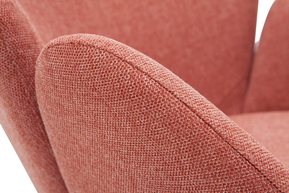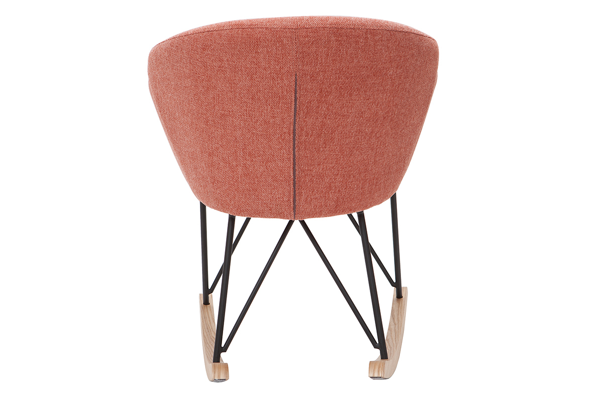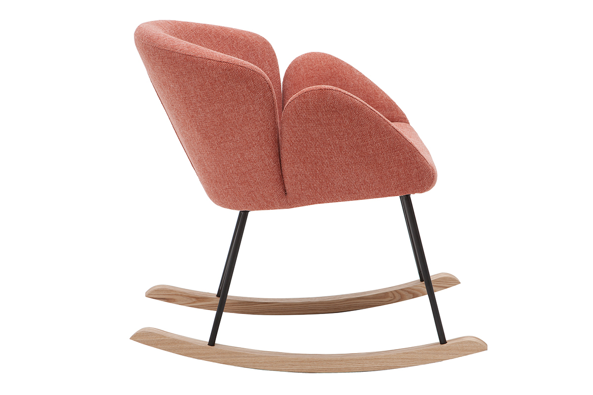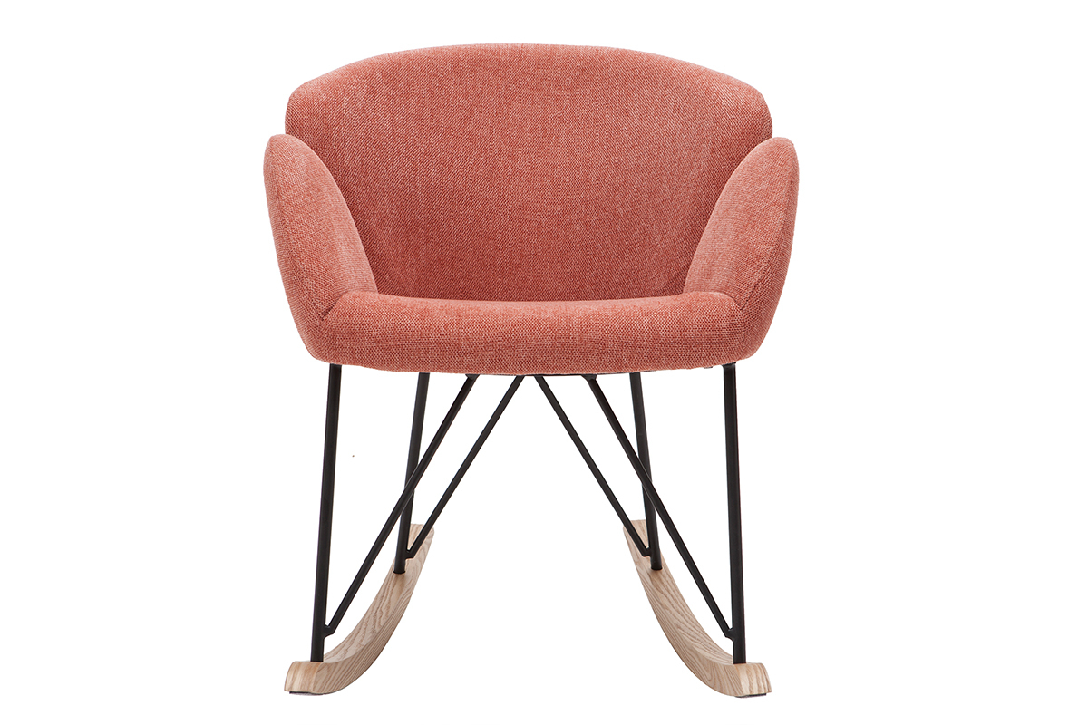 Son revêtement en polyester texturé effet velours terracotta confère à ce rocking chair tendance une élégance qu'on adore, tout à fait dans l'air du temps. Son piètement constitué de bois et de métal en fait un fauteuil à mi-chemin entre un esprit nordique et un style contemporain.