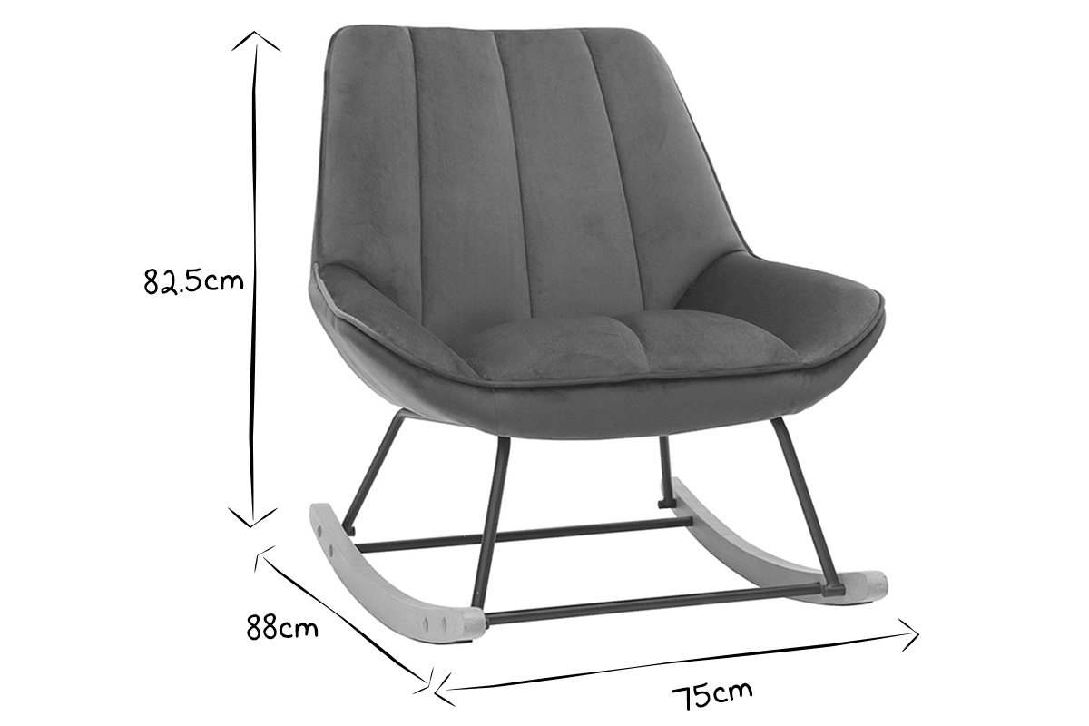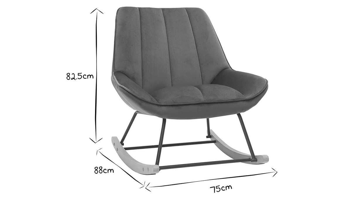 Des lignes douces travaillées tout en courbes, un revêtement en tissu velours, un piètement bimatière chaleureux en bois massif et métal : tous les ingrédients sont réunis pour former un fauteuil à bascule confortable et cocooning. Ce jeu de matières et de textures donne à ce siège un style singulier qui fait son charme.