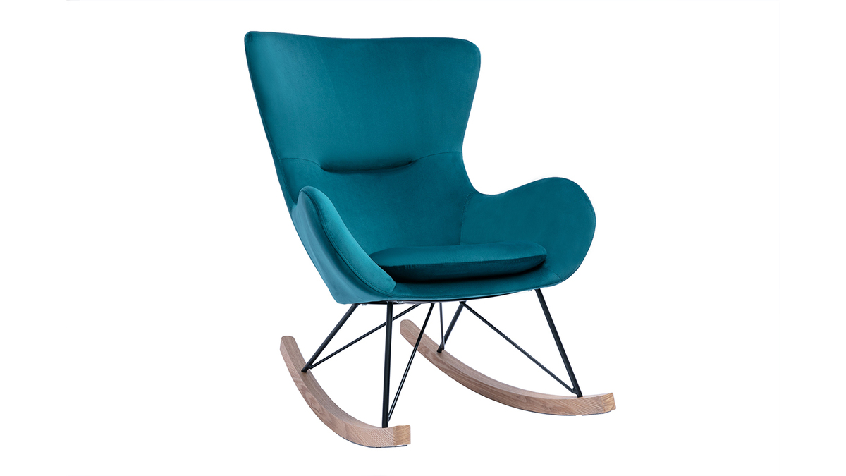 Revêtue d'un beau tissu velours bleu canard, cette assise élégante arbore une teinte tendance. La profondeur et le raffinement du coloris associés au piètement en bois et métal en font un élément dans l'air du temps et facile à adopter chez soi. Retrouvez dans le modèle ESKUA, le petit balancement propre aux fauteuils à bascule. Grâce à cet incontournable de la relaxation, à vous les moments détente !