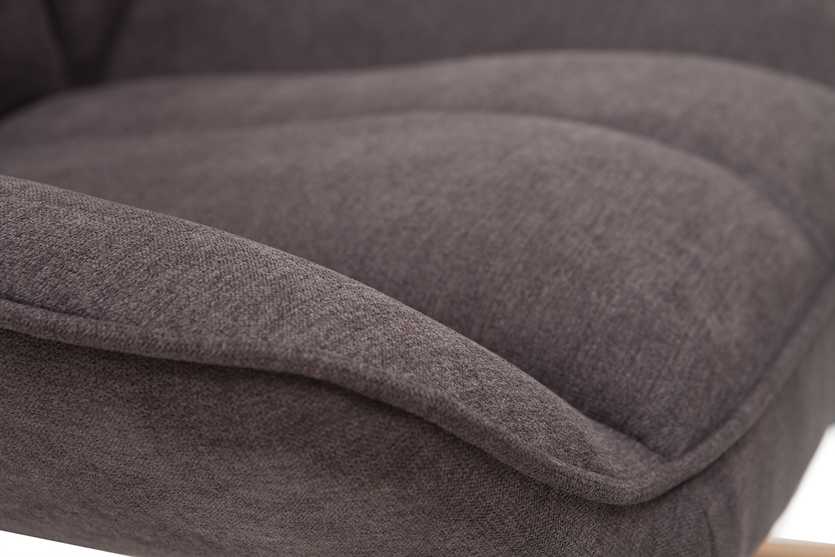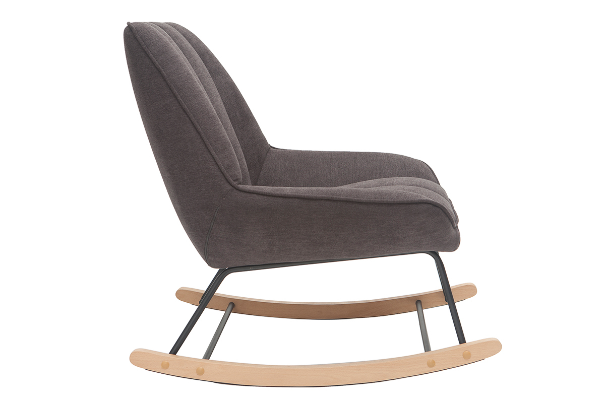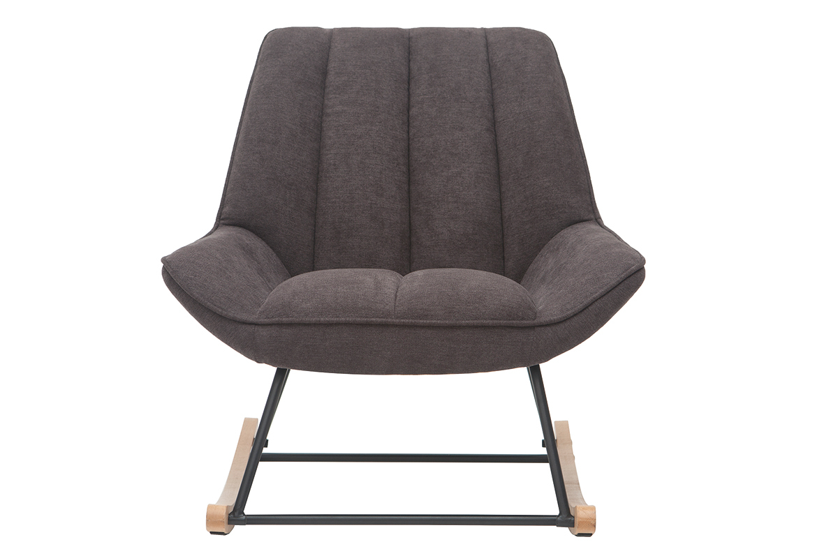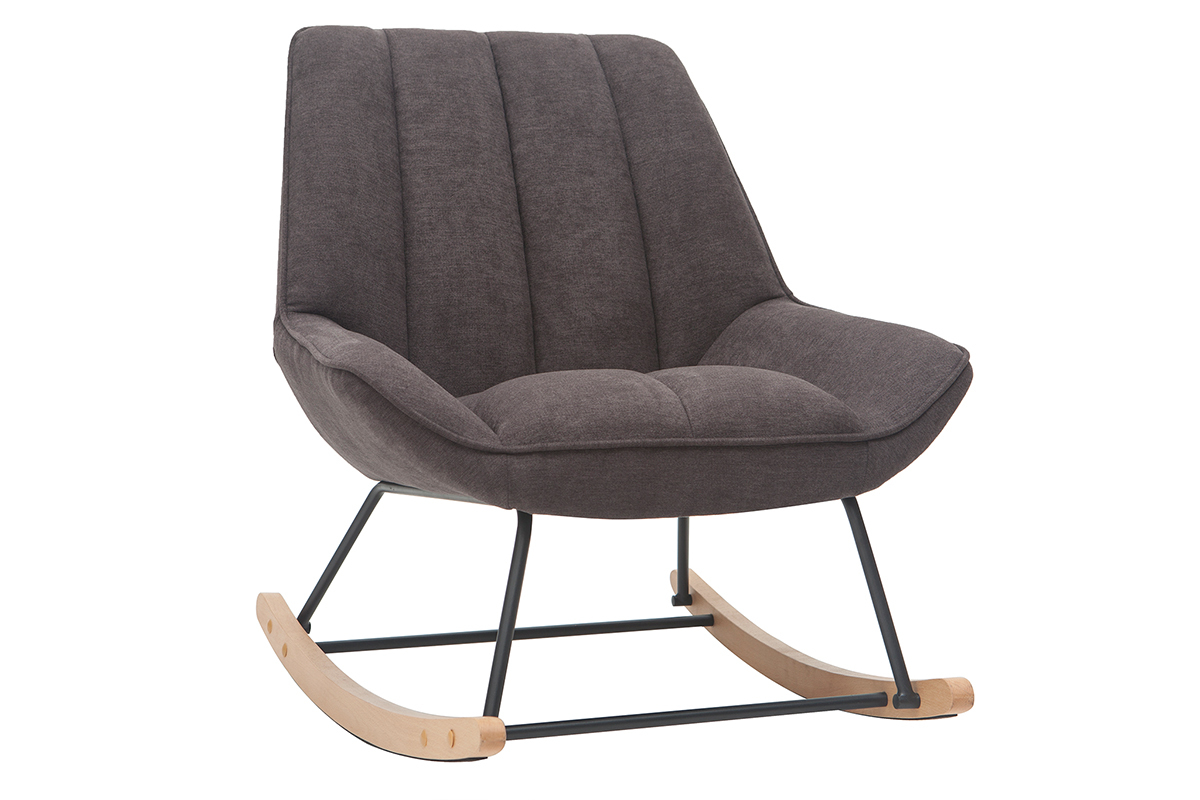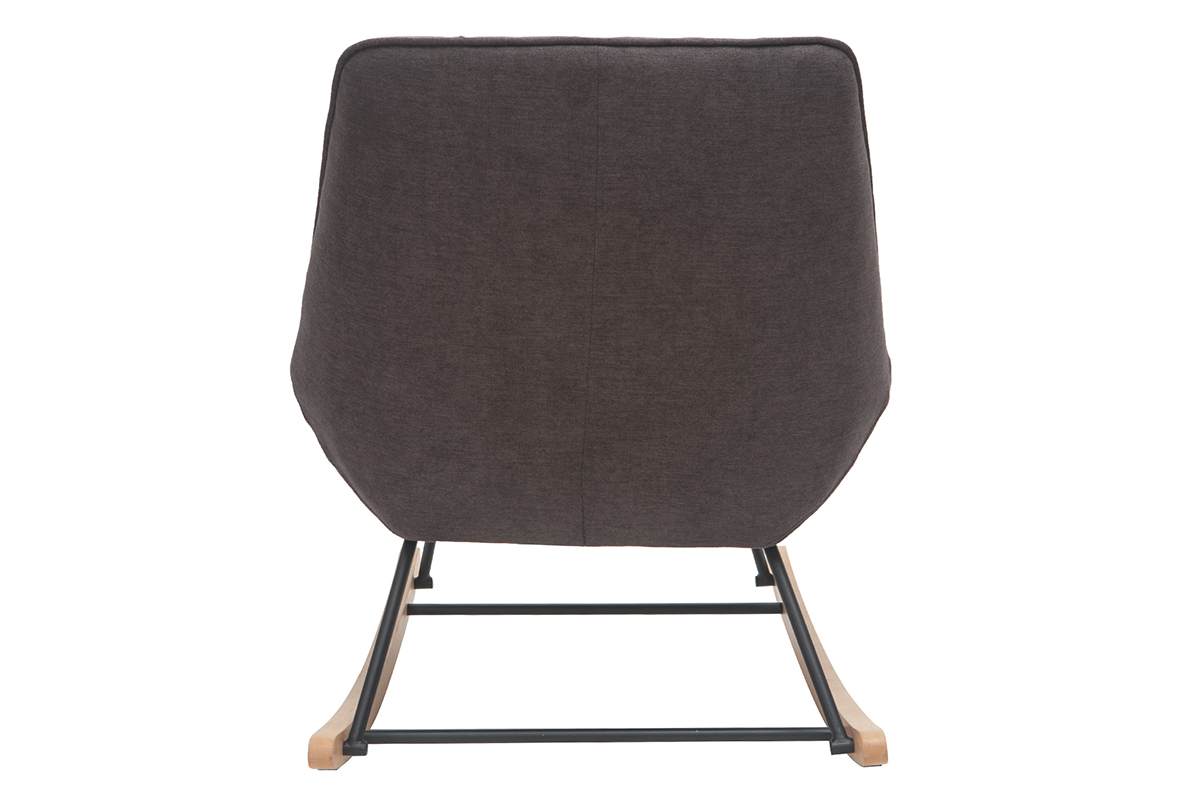 Rocking chair design en tissu velours gris foncé, métal noir et bois clair BILLIE livré prêt à assembler.