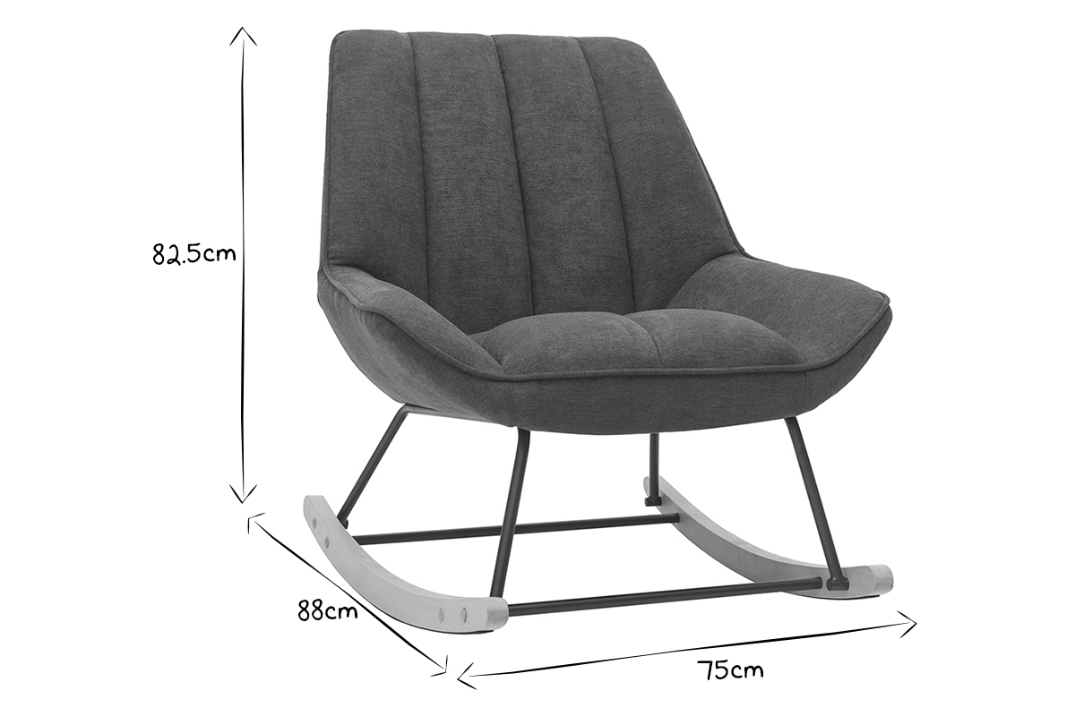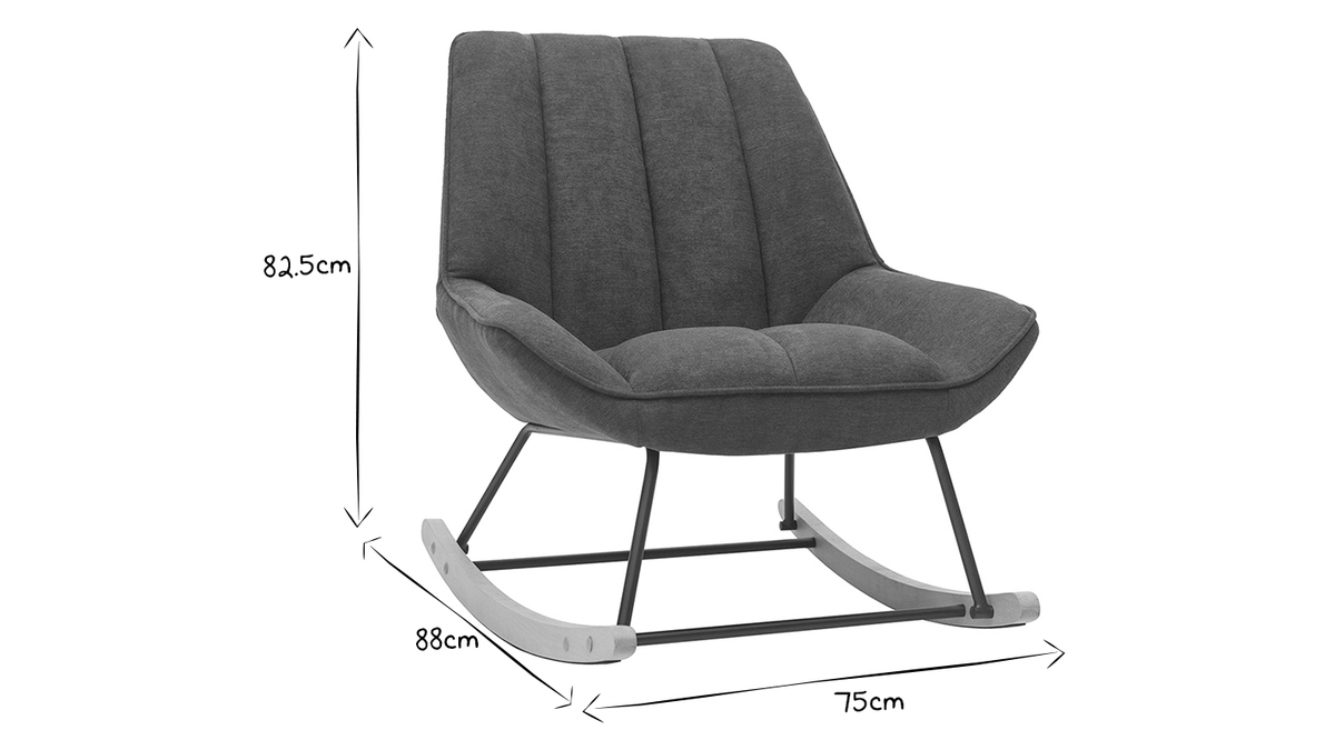 Au creux du siège enveloppant garni d'une agréable mousse, laissez-vous aller à un doux va-et-vient... Avec ses dimensions L75 x P88 x H82.5 cm, ce rocking chair moderne gris foncé trouvera sa place dans le salon comme dans la chambre.
