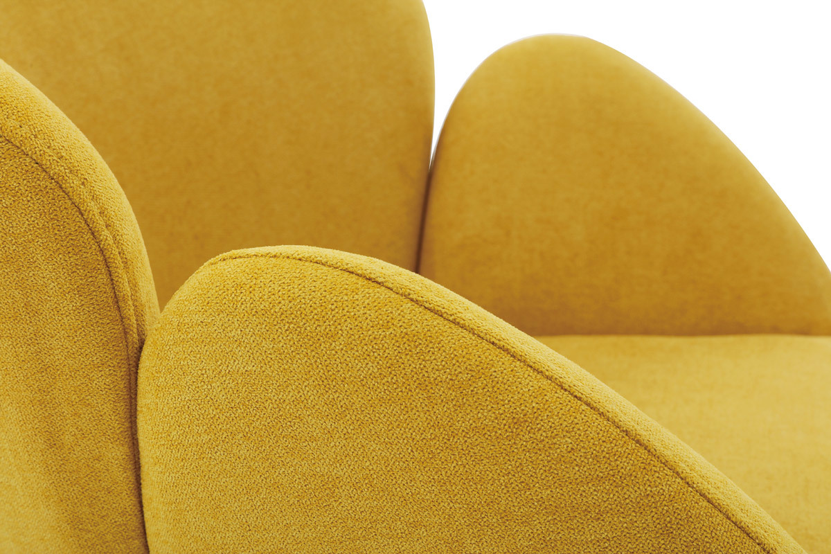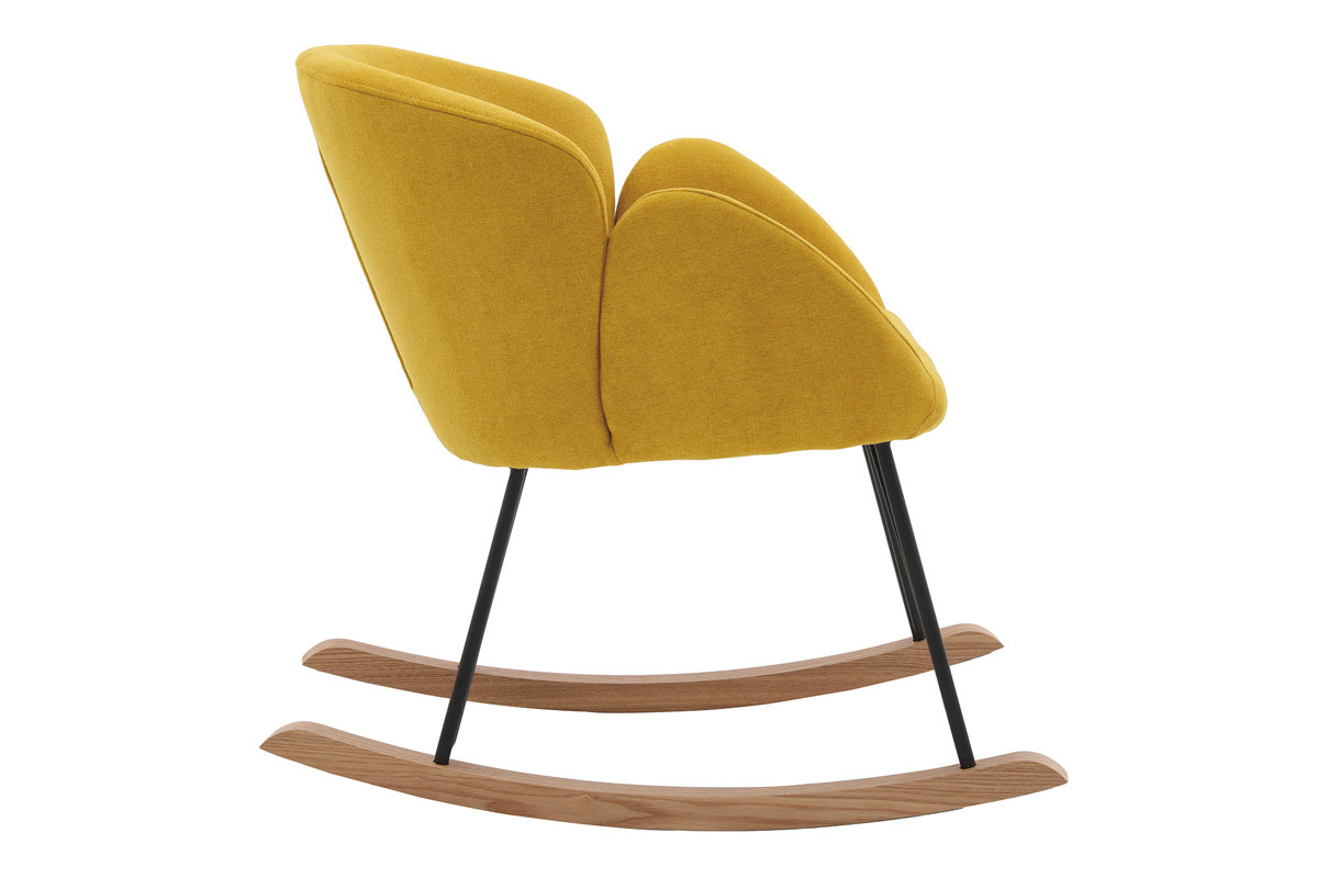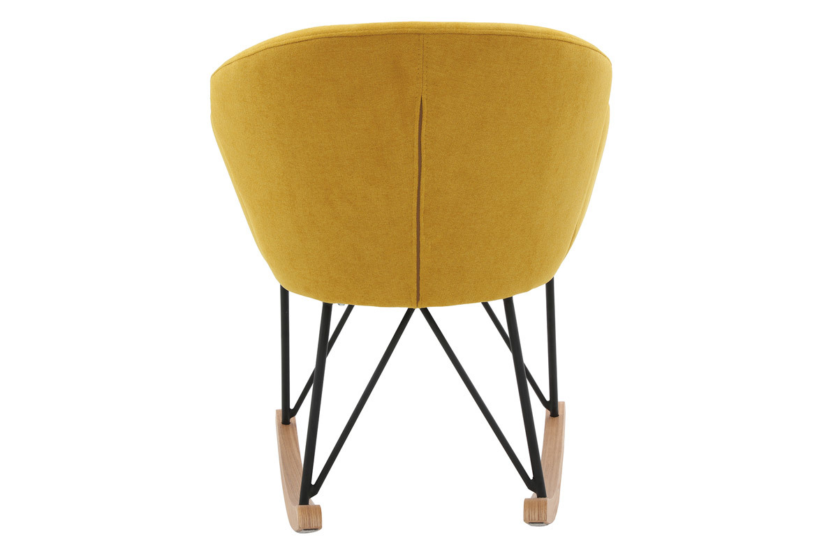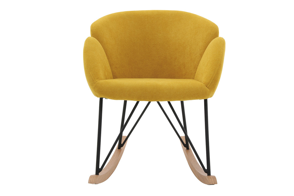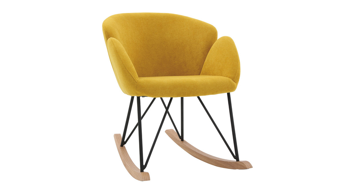 Son revêtement en polyester effet velours moutarde confère à ce rocking chair RHAPSODY une élégance qu'on adore, tout à fait dans l'air du temps. Son piètement constitué de bois et de métal en fait un fauteuil à mi-chemin entre un esprit nordique et un style contemporain.