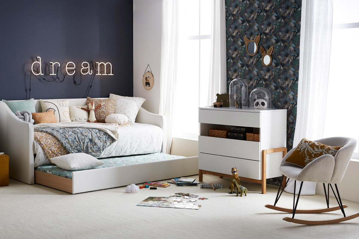 Un dossier enveloppant à souhait, des accoudoirs qui encadrent parfaitement l'assise, un mouvement de bascule qui berce... Vous êtes arrivé au moment le plus attendu de la journée, celui où vous pouvez souffler et vous relaxer ! Pour un moment cocooning et cosy, faites le plein de plaids et de coussins pour savourer ce fauteuil à bascule aussi joli que confortable.