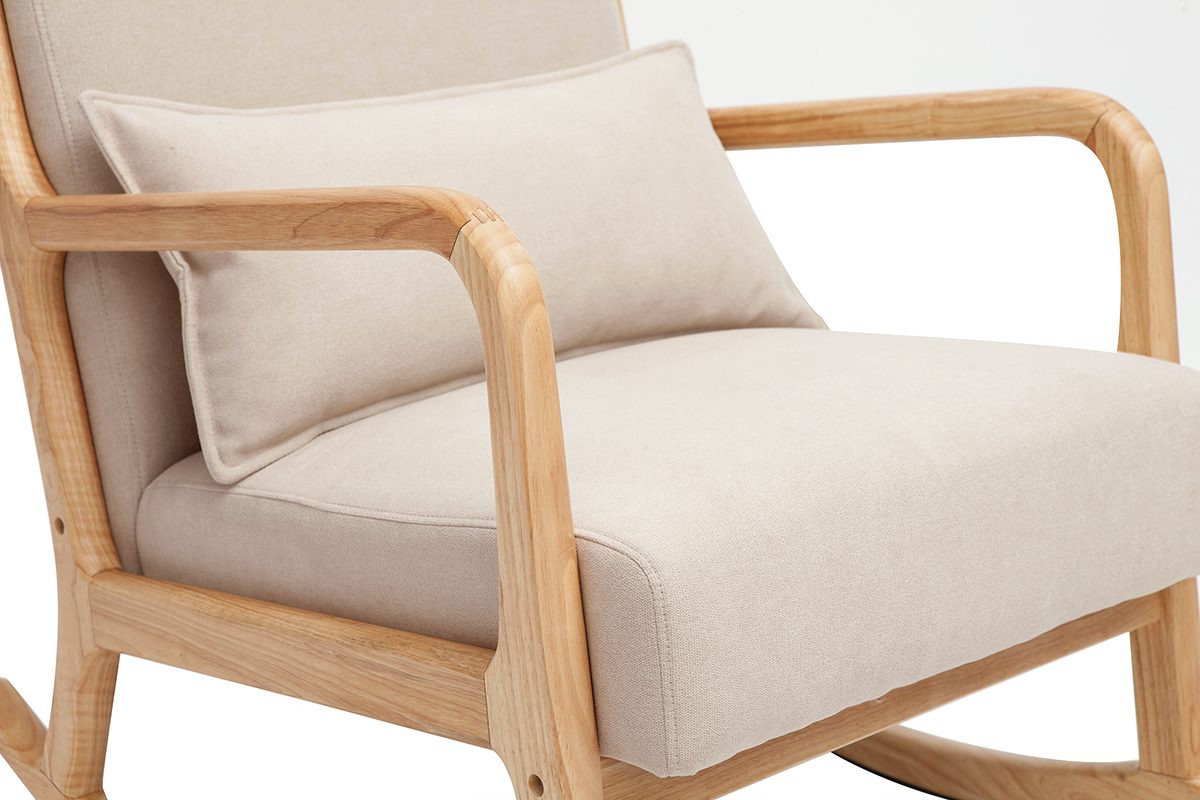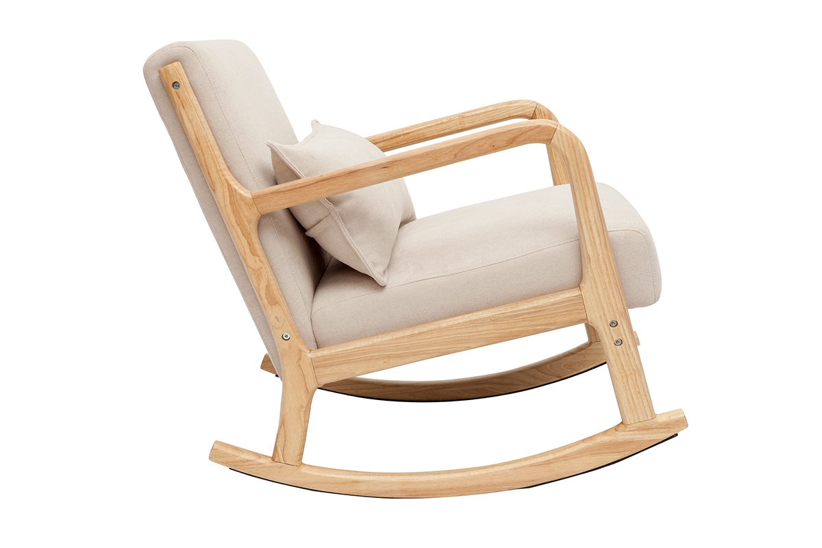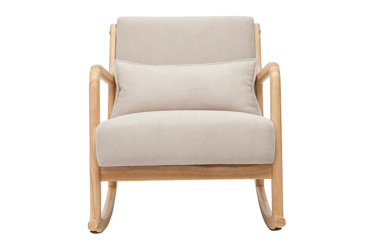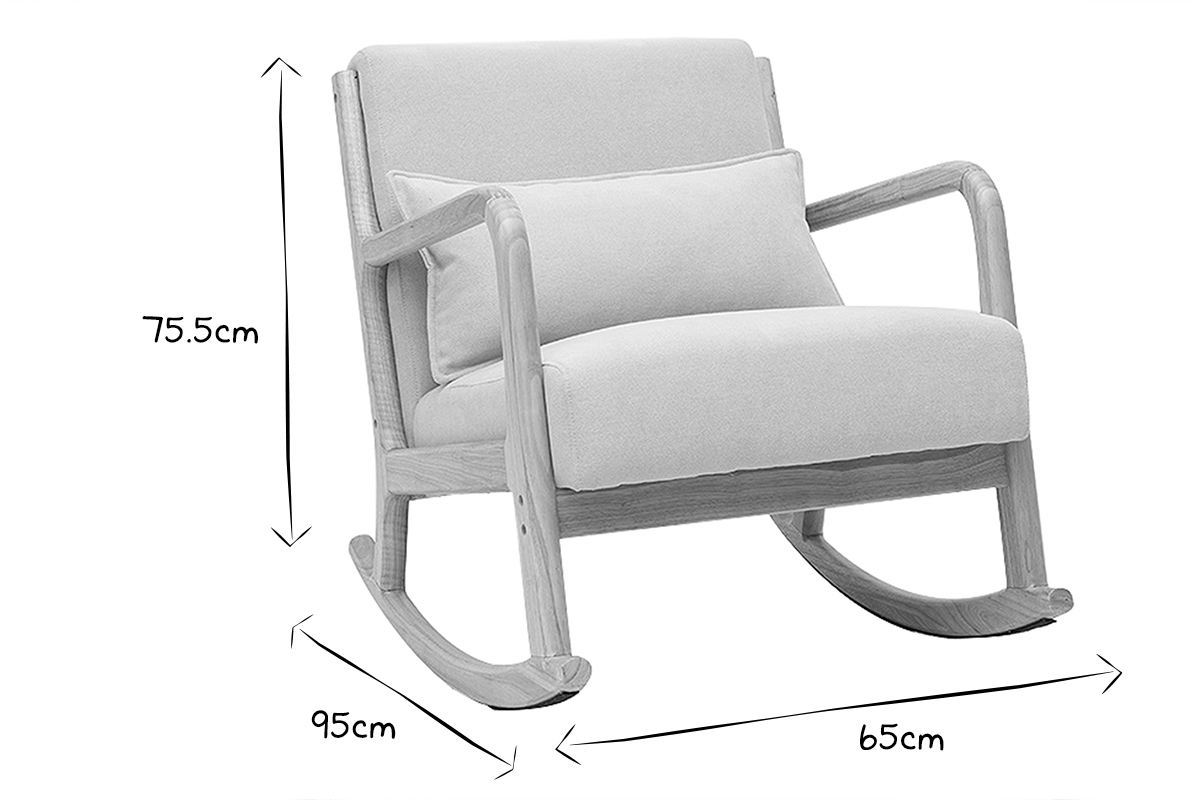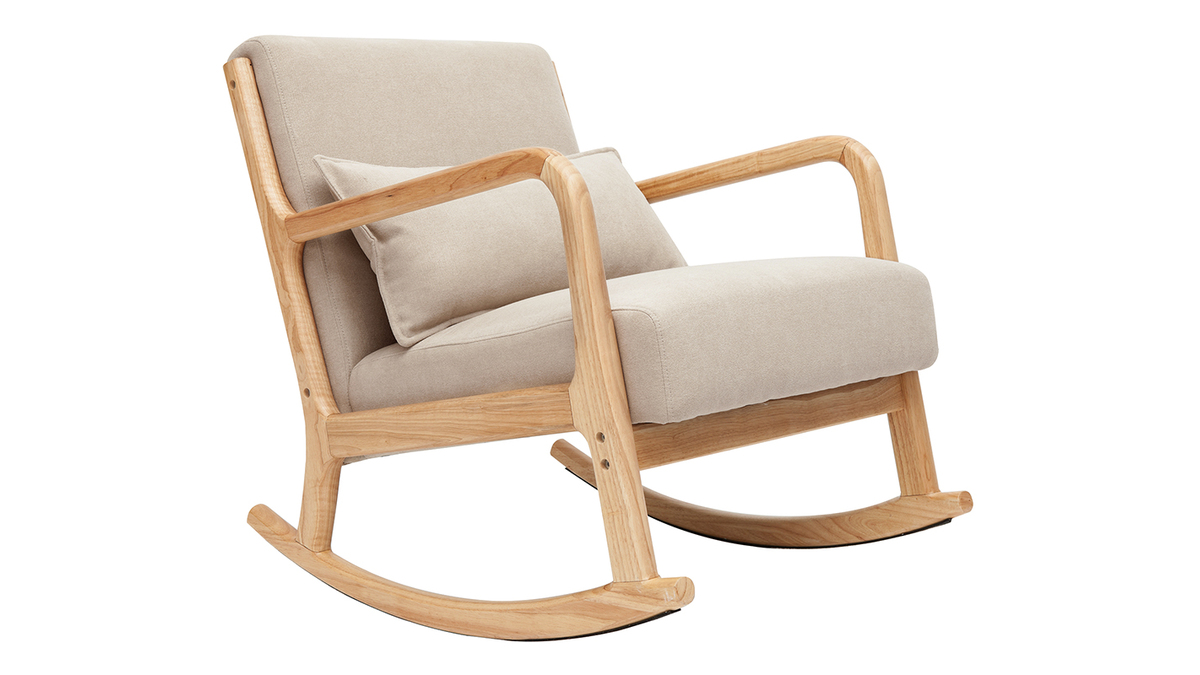 Dans la chambre comme dans la pièce à vivre, ce rocking chair en bois et tissu effet velours deviendra une pièce phare de votre intérieur. Tissu couleur beige et structure en bois clair forment une belle assise délicate qui nous fait totalement chavirer ! Avec son style épuré, ce fauteuil à bascule s'inscrit totalement dans la tendance scandinave qui ne cesse de prendre place dans notre intérieur.