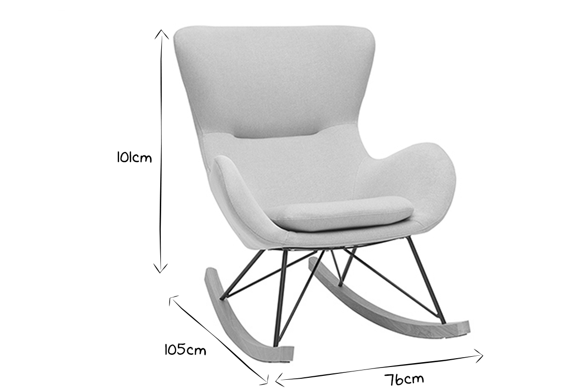 Revêtue de tissu couleur gris clair, cette assise élégante arbore les tons chers au style scandinave. La clarté du coloris associée au piètement en bois et métal en fait un élément dans l'air du temps et facile à adopter chez soi. Retrouvez dans le modèle ESKUA, le petit balancement propre aux fauteuils à bascule. Grâce à cet incontournable de la relaxation, à vous les moments détente !