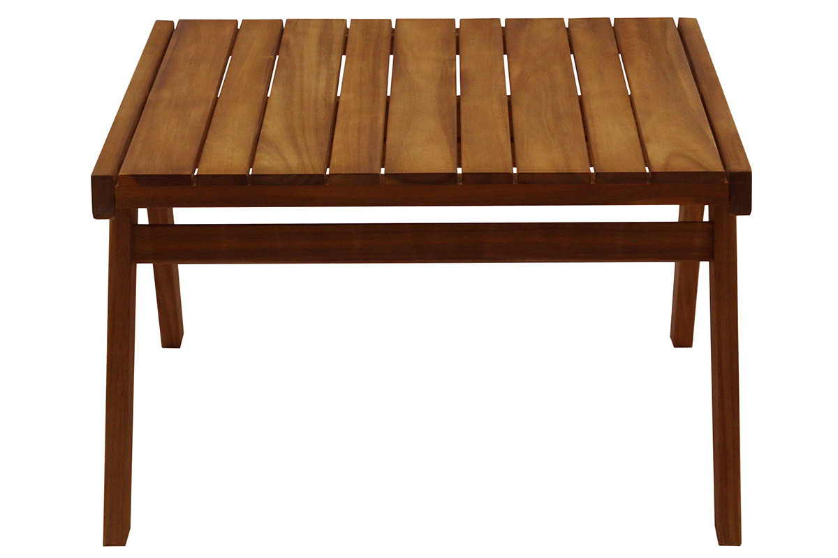 Avec ses pieds obliques et son design, la table basse de jardin carrée (L65 x L65 cm) est parfaitement assortie ! Cet élément central du salon de jardin pour rassembler famille et amis autour d'un moment de convivialité, s'envisage également en solo aux côtés d'une chillienne ou bain de soleil. Lecture estivale, boisson désaltérante et crème solaire à portée de main lors de vos pauses relaxantes !