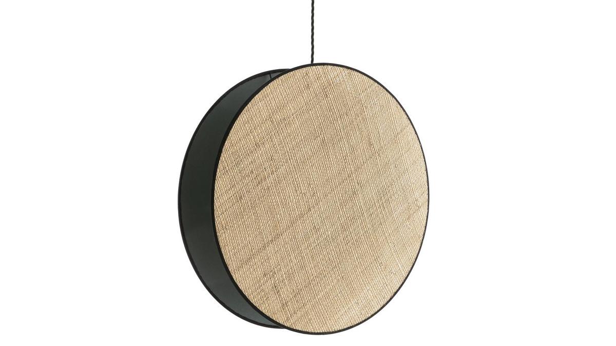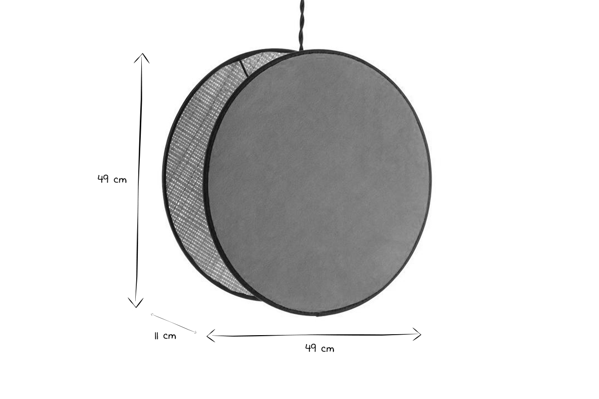 Matière : Disques en tissu velours 100% polyester et tissu rabane / Structure en métal noir / Câble en tissu torsadé / Rosace en plastique noir