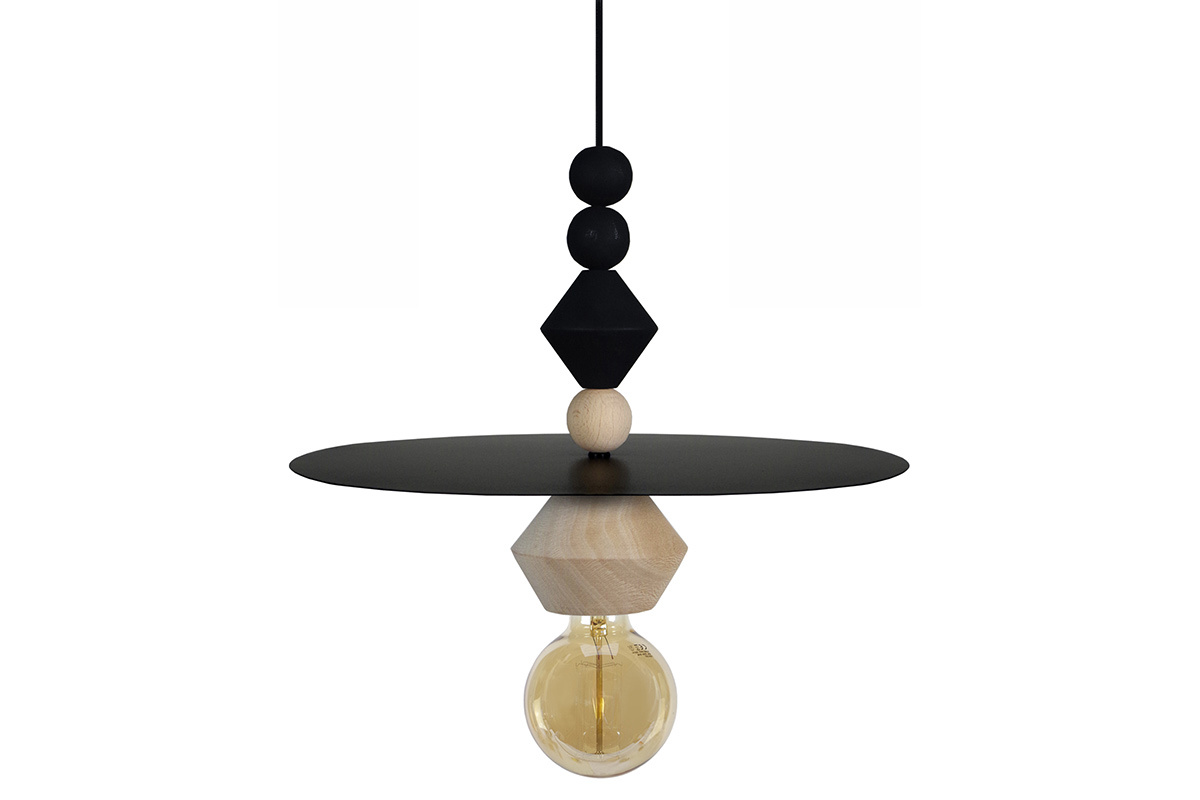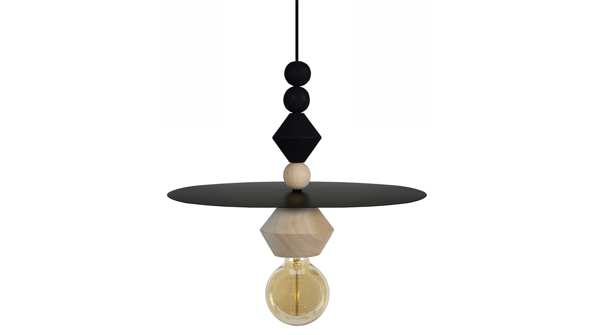 Les suspensions AKOYA sont assemblées à la manière d'un collier, où l'on vient enfiler les perles une à une. J'ai choisi d'alterner des perles en bois de formes différentes, dont certaines sont brutes, noires ou blanches, pour venir rythmer la composition et ainsi obtenir la combinaison la plus équilibrée.