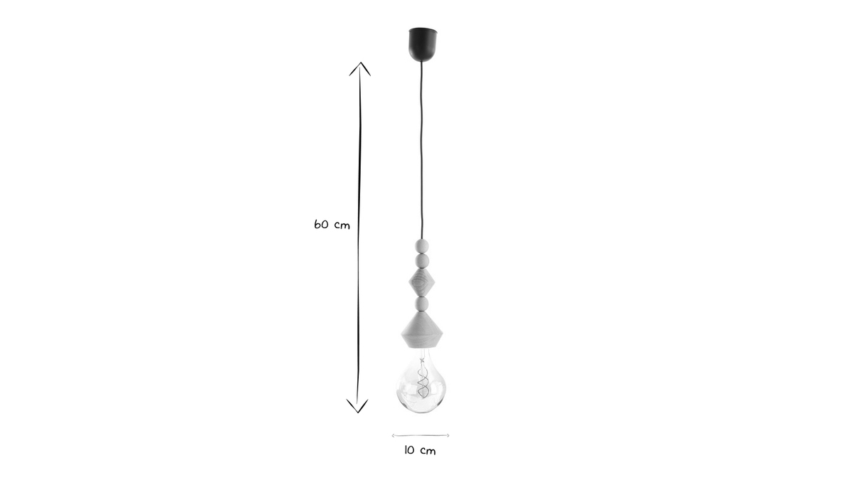 La suspension AKOYA est livrée avec un câble électrique en plastique noir et rosace assortie (D7 cm) et est compatible avec une ampoule E27 (40W max) non fournie.