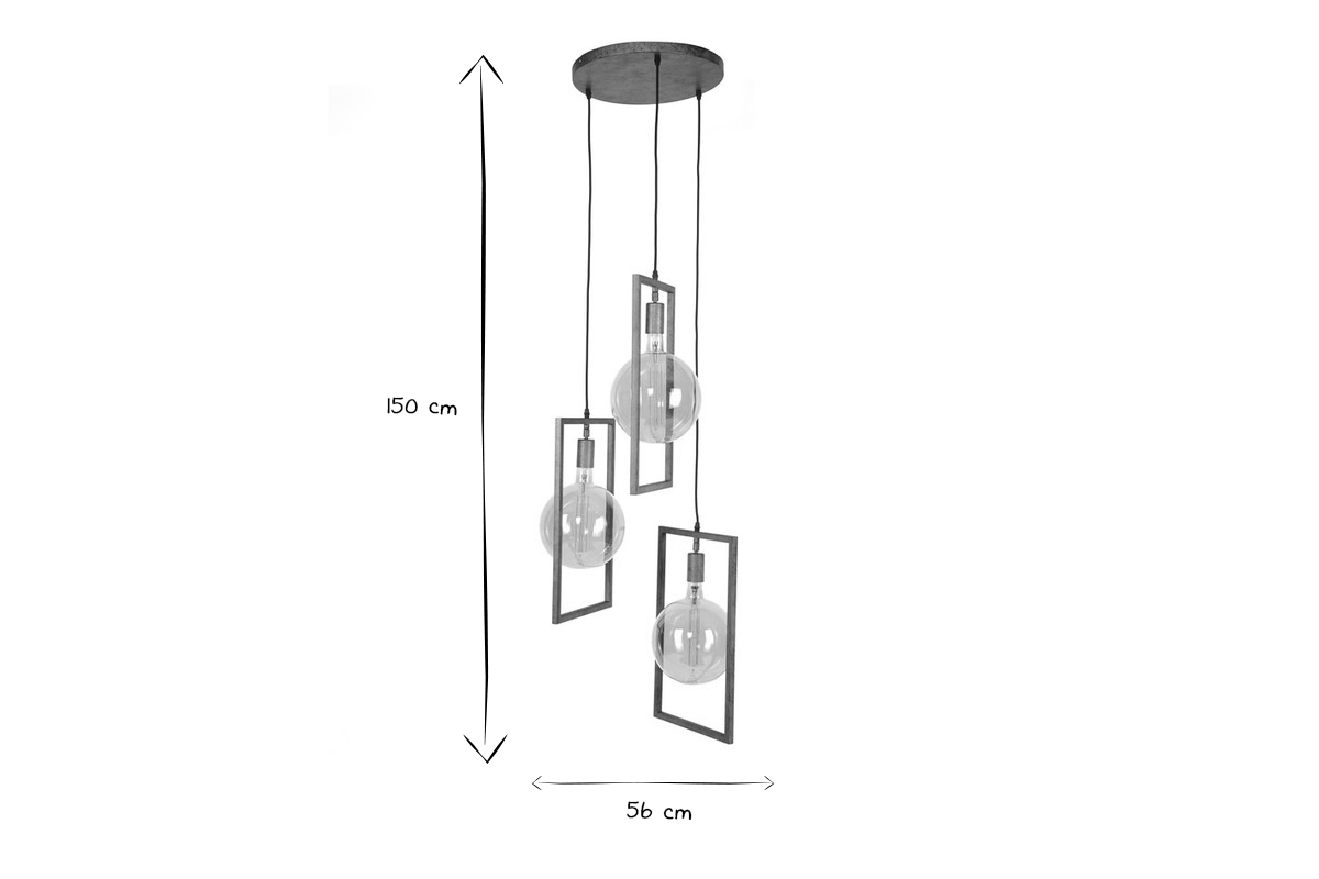 Les 3 cadres rectangulaires abritant les lampes sont fins et confèrent à cette suspension 3 fils une silhouette aérienne. Sans filtre, ni abat-jour, cette lampe suspension finition métal vieilli permet une diffusion efficace et harmonieuse de la lumière dans toute la pièce.