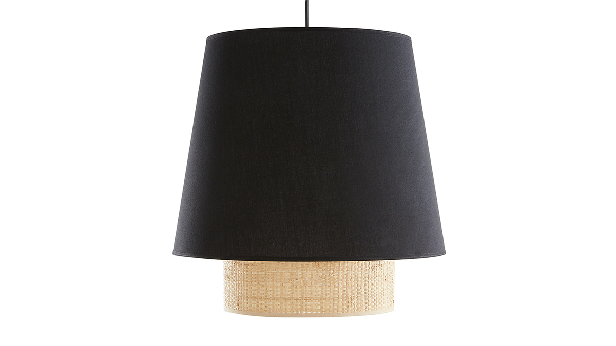 Suspension design bi-matière en rabane et coton noir D40 cm JUME (Ce produit n'est plus commercialisé)