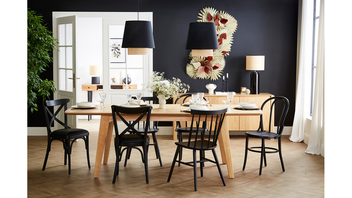 La suspension JUME est munie d'une rosace et d'un câble électrique en plastique noir (L60 cm). Elle est compatible avec une ampoule E27 (60W max) non fournie.