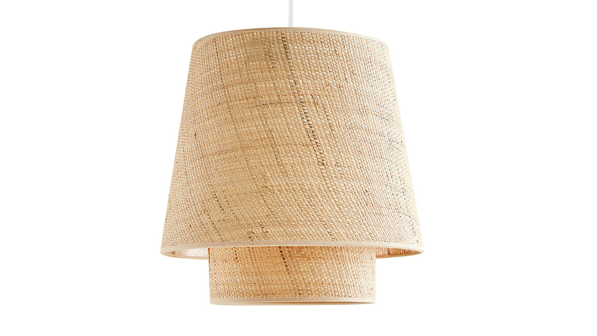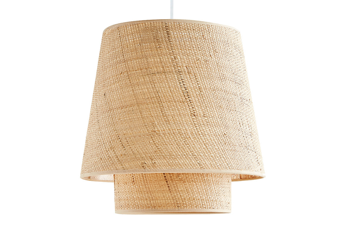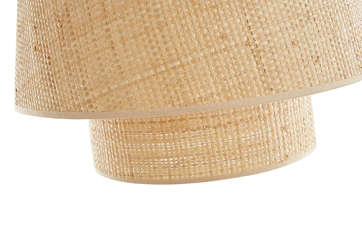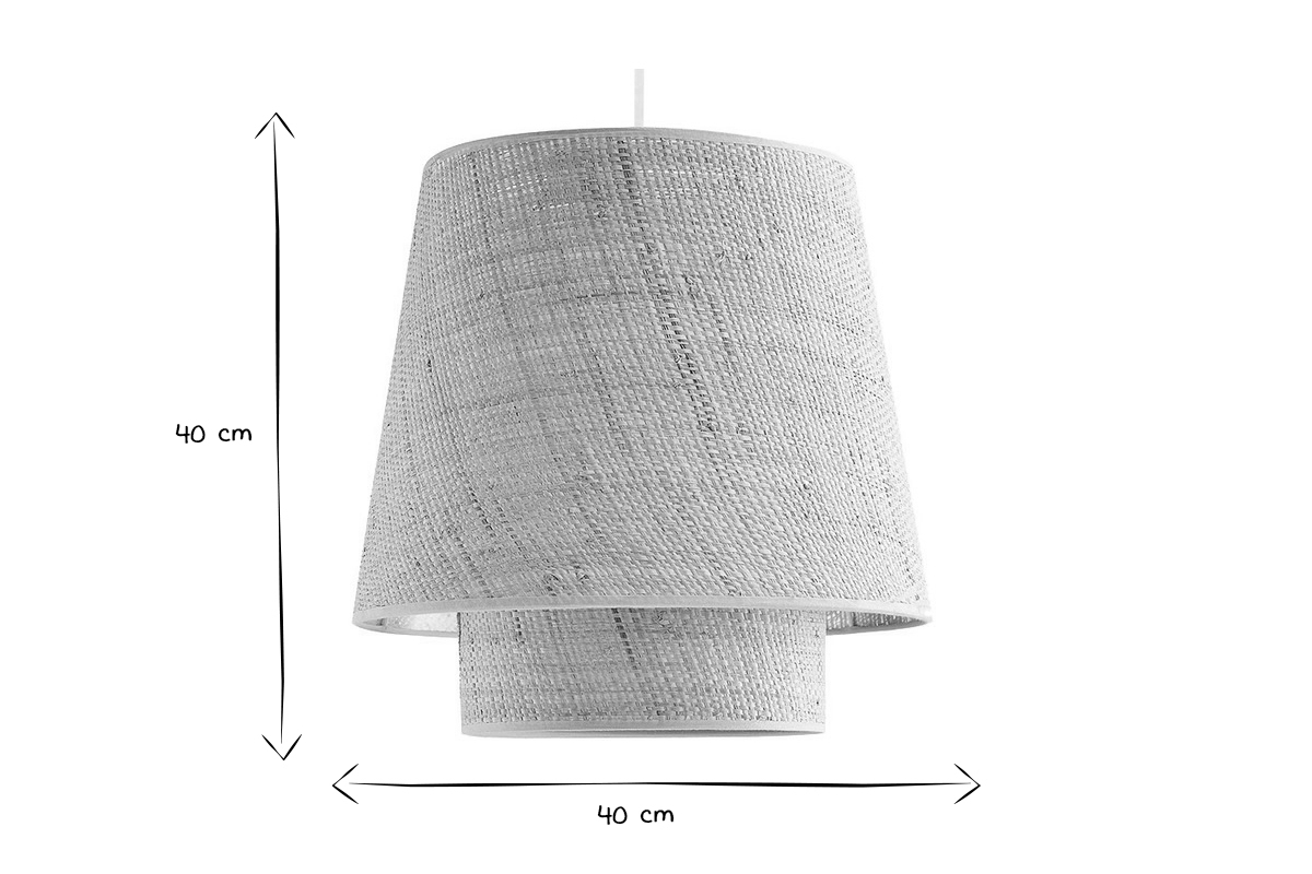 Matière : Abat-jour en rabane, carcasse abat-jour en métal blanc, câble et rosace en plastique