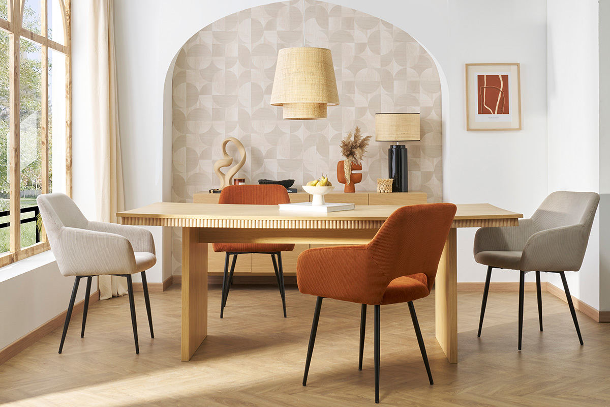 Son originalité réside dans la superposition de formes géométriques qui crée un volume aérien autour de la source lumineuse. Cette création contemporaine est signée Camille Paquereau, designer Miliboo. Avec JUME, Camille repense la silhouette archétypale de l'abat-jour traditionnel. Il lui donne une nouvelle lecture en le travaillant dans un joli tissu rabane.