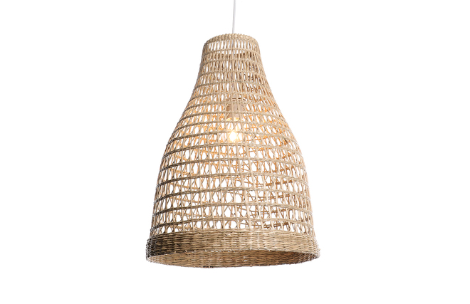 Avec son diamètre de 36 cm et sa forme conique, cette suspension cloche en rotin ajouré est à la fois originale et élégante.