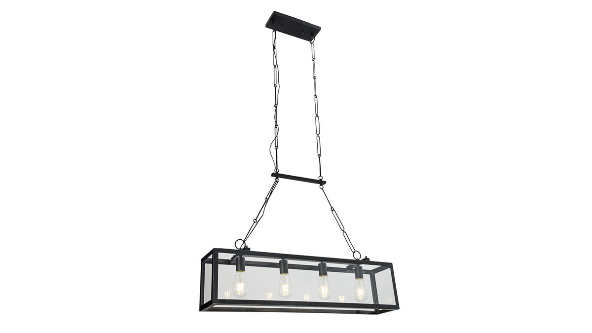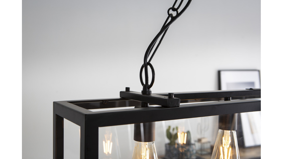 La suspension GALERIA rappelle les lustres à l'ancienne avec sa structure composée de métal et de verre. Cependant, disposée dans un intérieur à la décoration moderne, elle prend tout son sens et apporte une touche épurée, contemporaine. Grâce à ses nombreux chaînons et son armature forgée, elle se veut robuste. Elle offre quatre points lumineux et, avec de belles ampoules à filament rétro, elle illuminera votre salle à manger ou salon de façon unique.