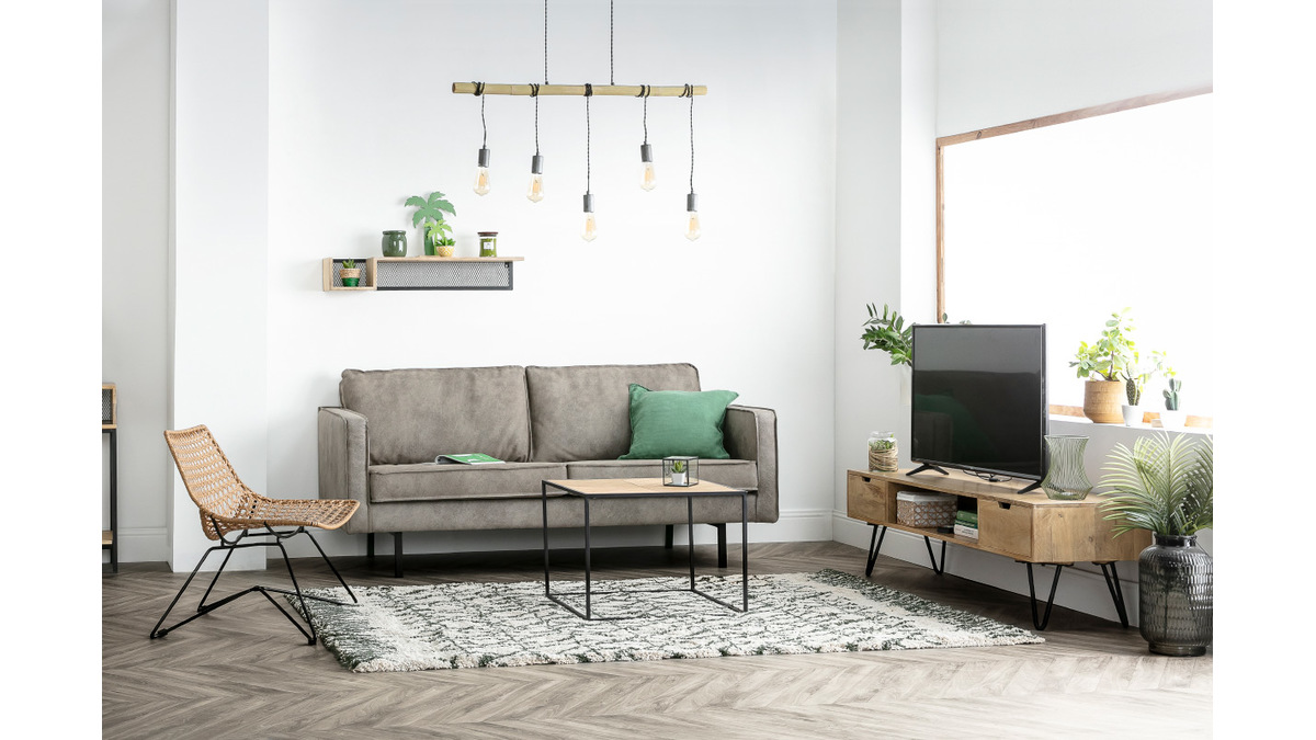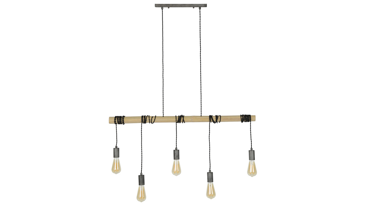 Composée de cinq ampoules enroulées autour d'un morceau de bambou, cette suspension est unique. Profitez ainsi d'une belle source lumineuse tout en offrant à votre intérieur un véritable objet déco. Le mélange entre métal vieilli et bois en fait un accessoire au style industriel affirmé pour une atmosphère chaleureuse et authentique.