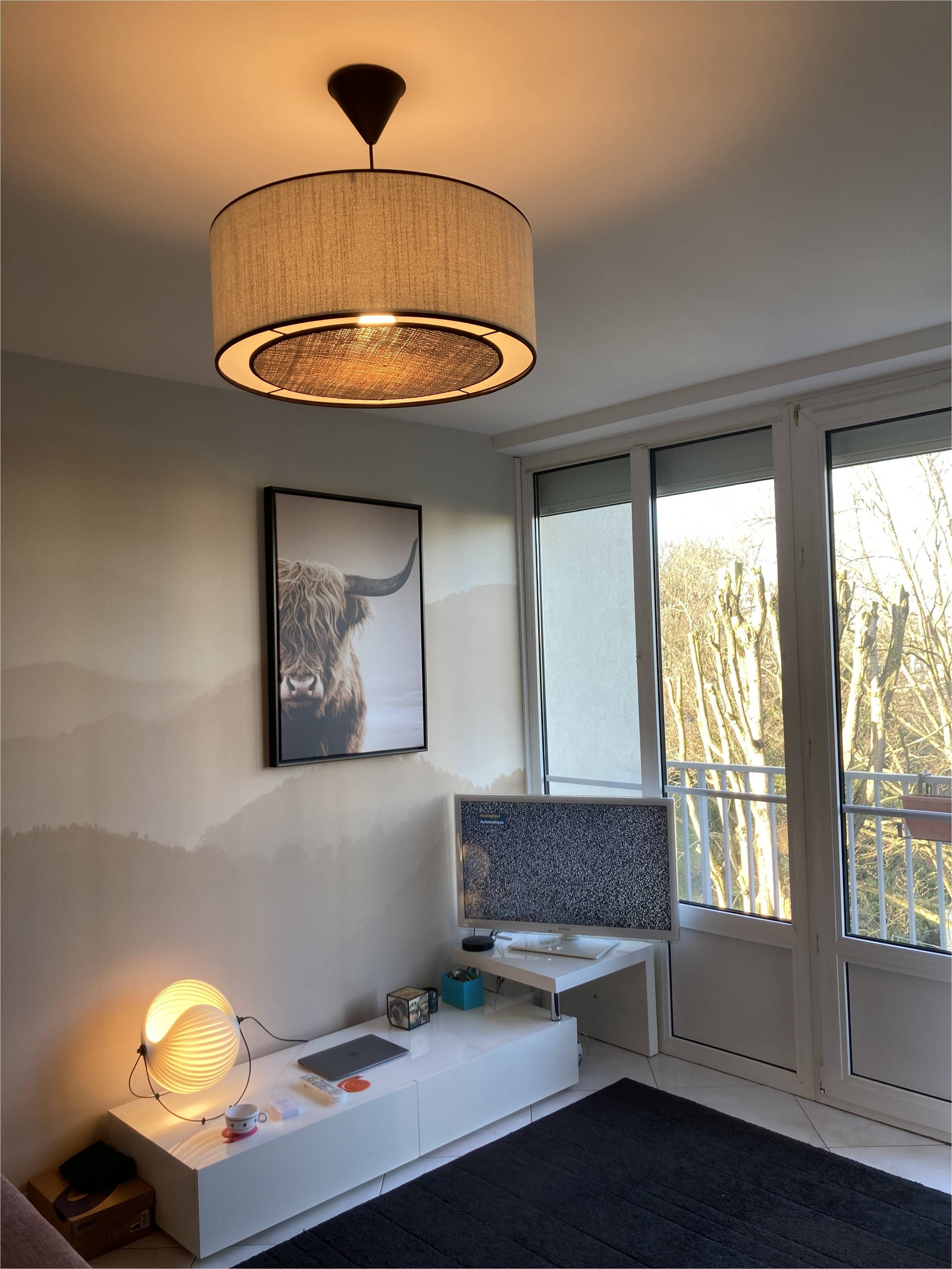 La lumière filtrant à travers la matière, cet abat-jour offre un éclairage d'ambiance chaleureux. Il est complété par un disque diffuseur amovible en rabane naturel. Vous pouvez ainsi choisir l'intensité lumineuse de votre suspension. Sans le disque diffuseur, la lumière sera projetée directement vers le bas et donc relativement puissante. Avec le disque, la lumière sera plus diffuse car indirecte.