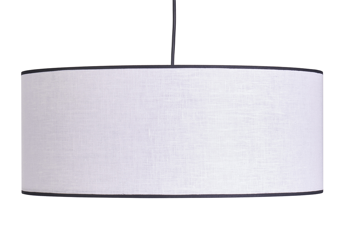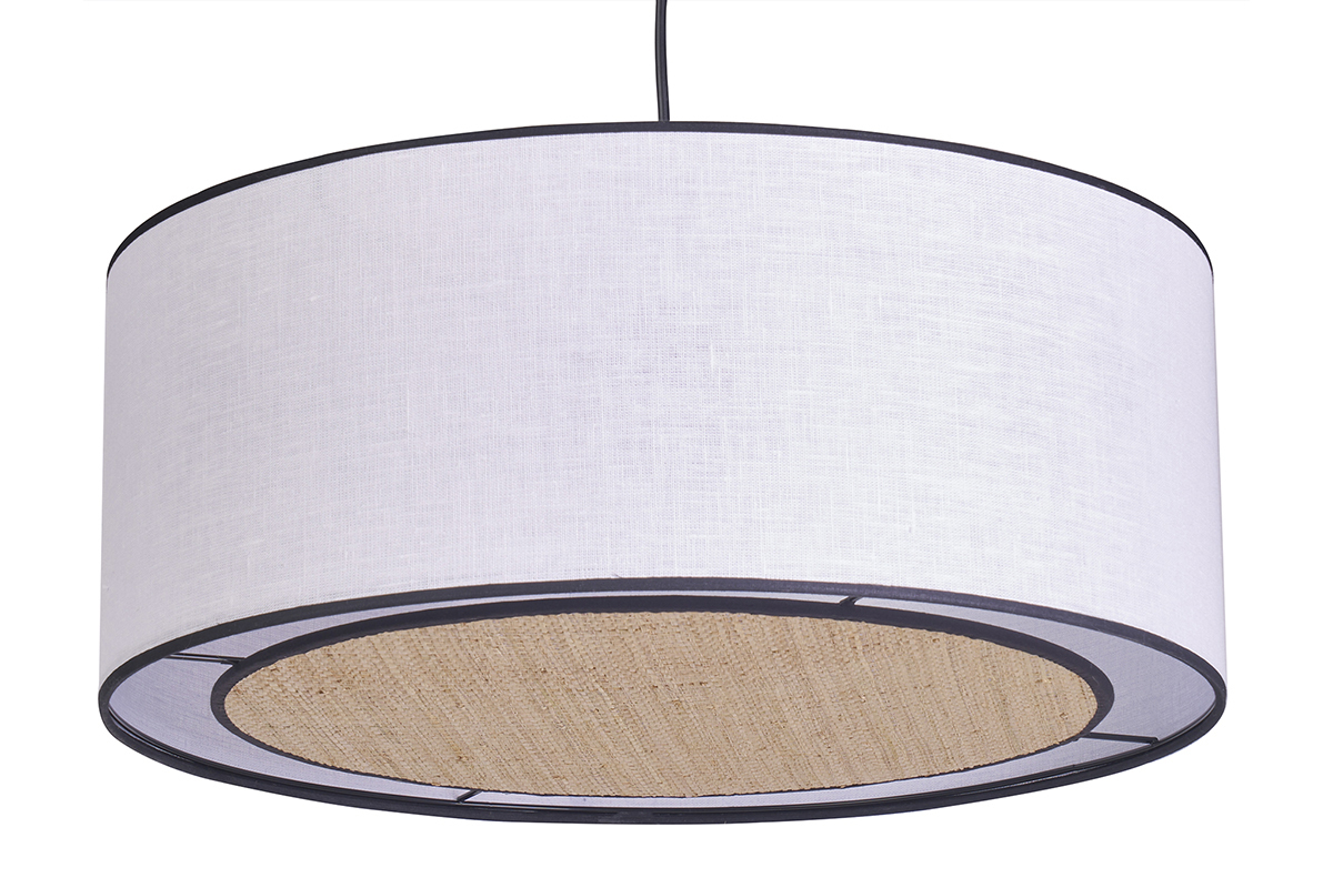 Fabriquée en France, cette grande suspension aux dimensions L50 x L50 x H20 cm et aux lignes épurées, présente une superbe association de matières naturelles. Le grand abat-jour cylindrique est habillé d'un tissu en lin blanc très lumineux. Sa silhouette minimaliste est délicatement soulignée par le biais de couleur noire.