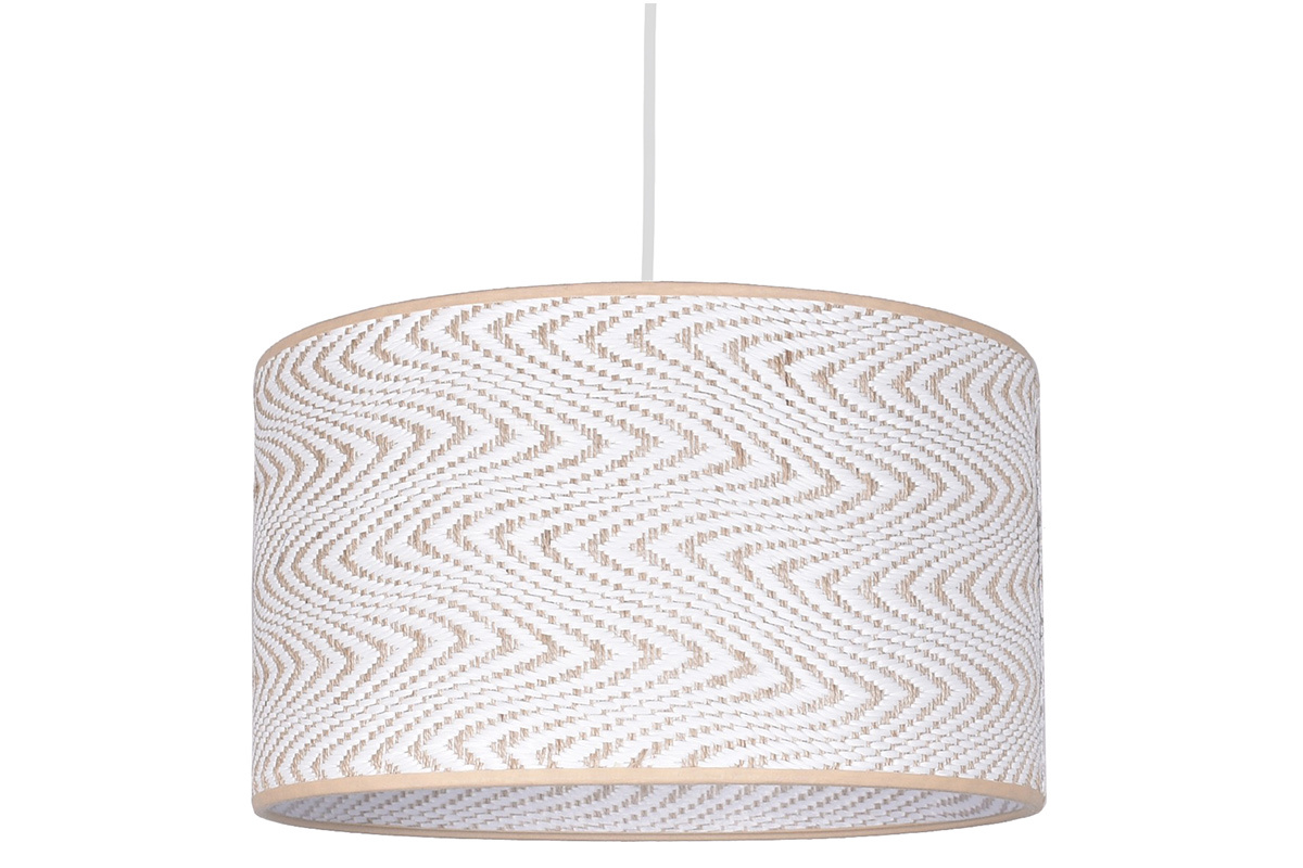 Cette suspension en fibre végétale et à la beauté hypnotique offre un joli contraste entre une silhouette contemporaine et une matière naturelle. Elle se distingue par son abat-jour en tissu rabane naturel et blanc, dont les motifs chevrons captivent le regard ! La lumière filtrant à travers la matière, cette suspension cylindrique naturelle offre un éclairage d'ambiance, à la fois doux et tamisé.