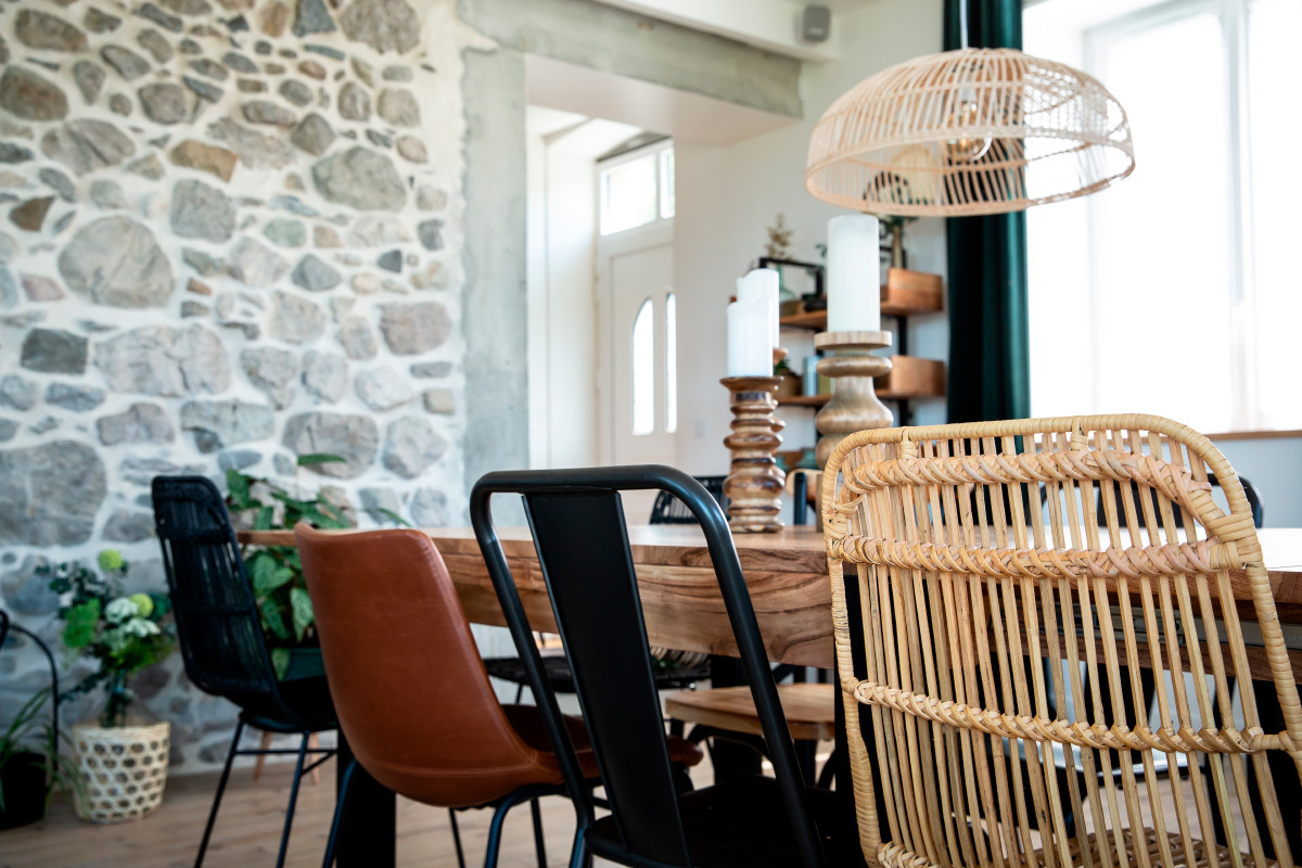 Pour une déco 100 % naturelle, on multiplie les suspensions en rotin et on les accompagne de petits meubles en bois massif.